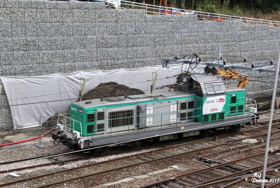 Voici la 669430 Infra avec le logo en livrée Fret (ex 66430 mise en service le 03-04-1969) en queue de TM passage par la gare de SPDC pour
