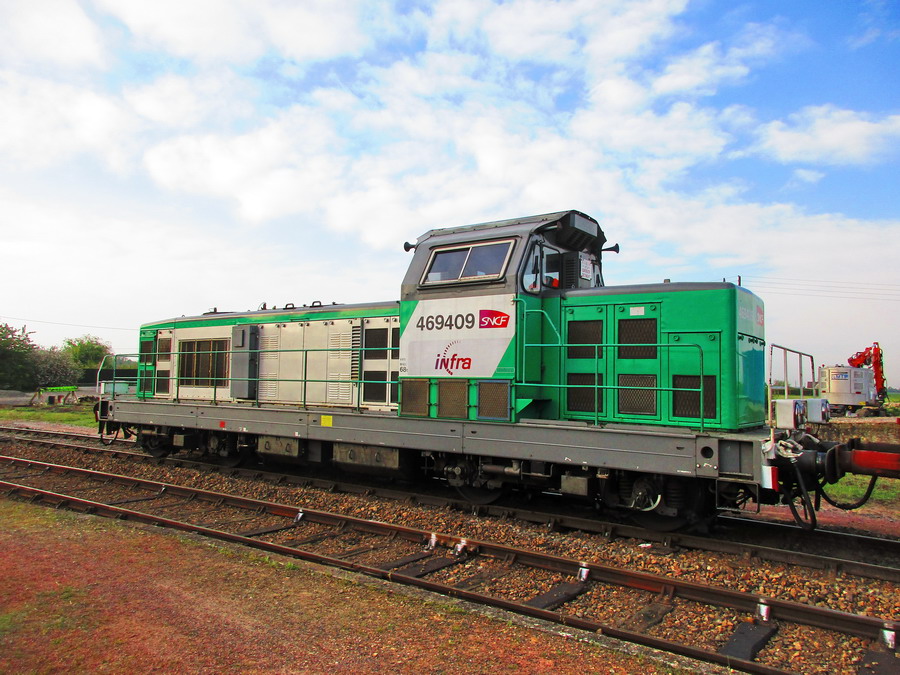 - Machine BB 469409 en livrée Fret SNCF et logo Infra Dijon-Perrigny (côté Loches)