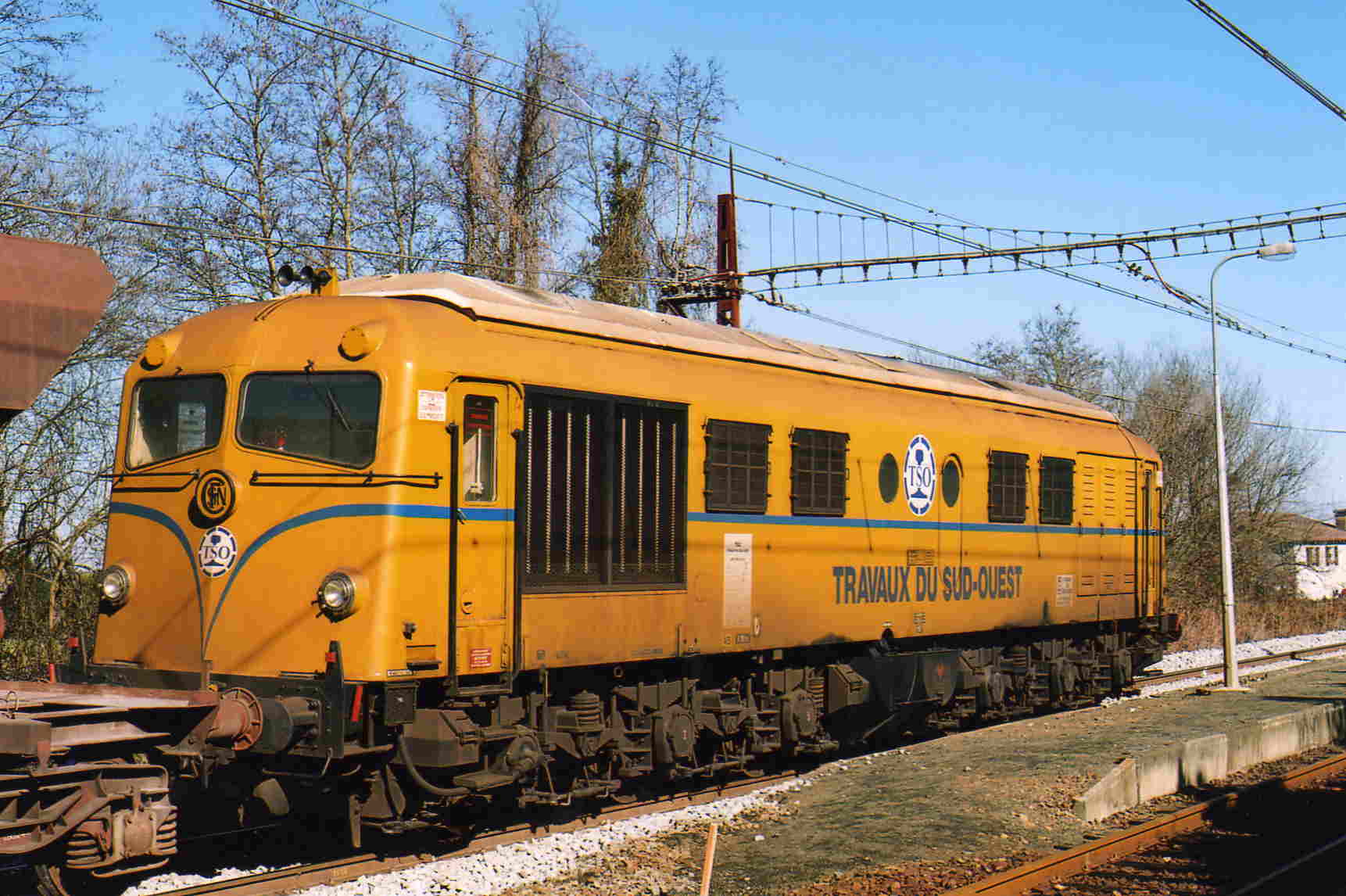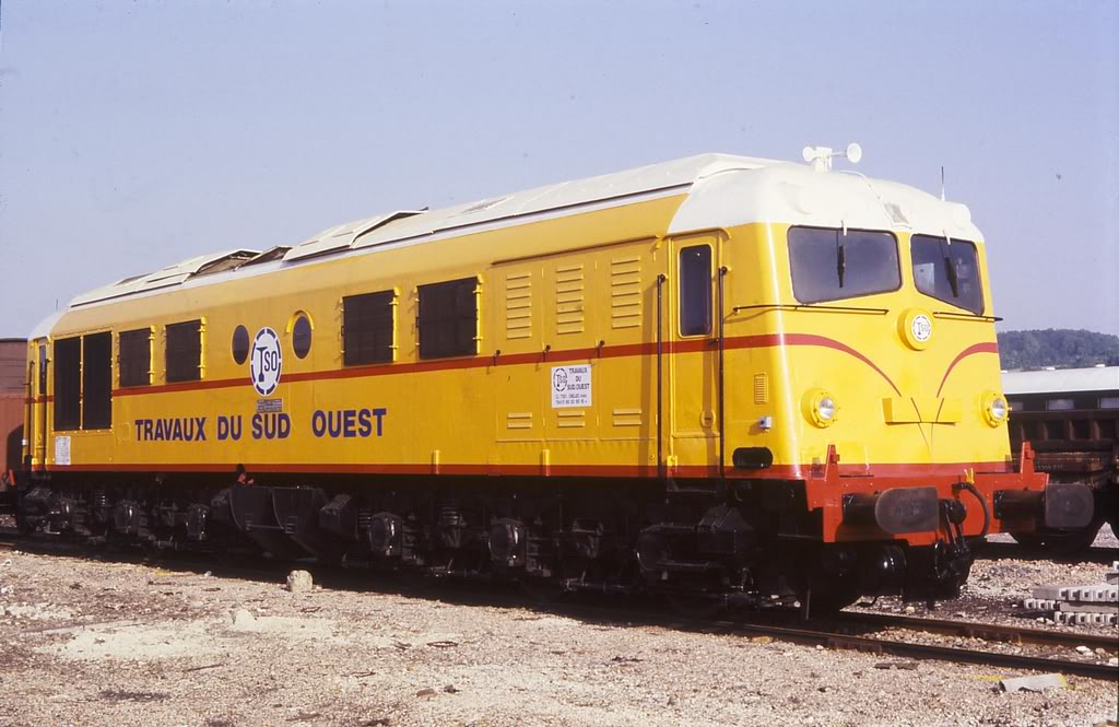 - ancien logo TSO (T en forme de rail inversé) et ancien marquage latéral (TRAVAUX DU SUD-OUEST) en bleu