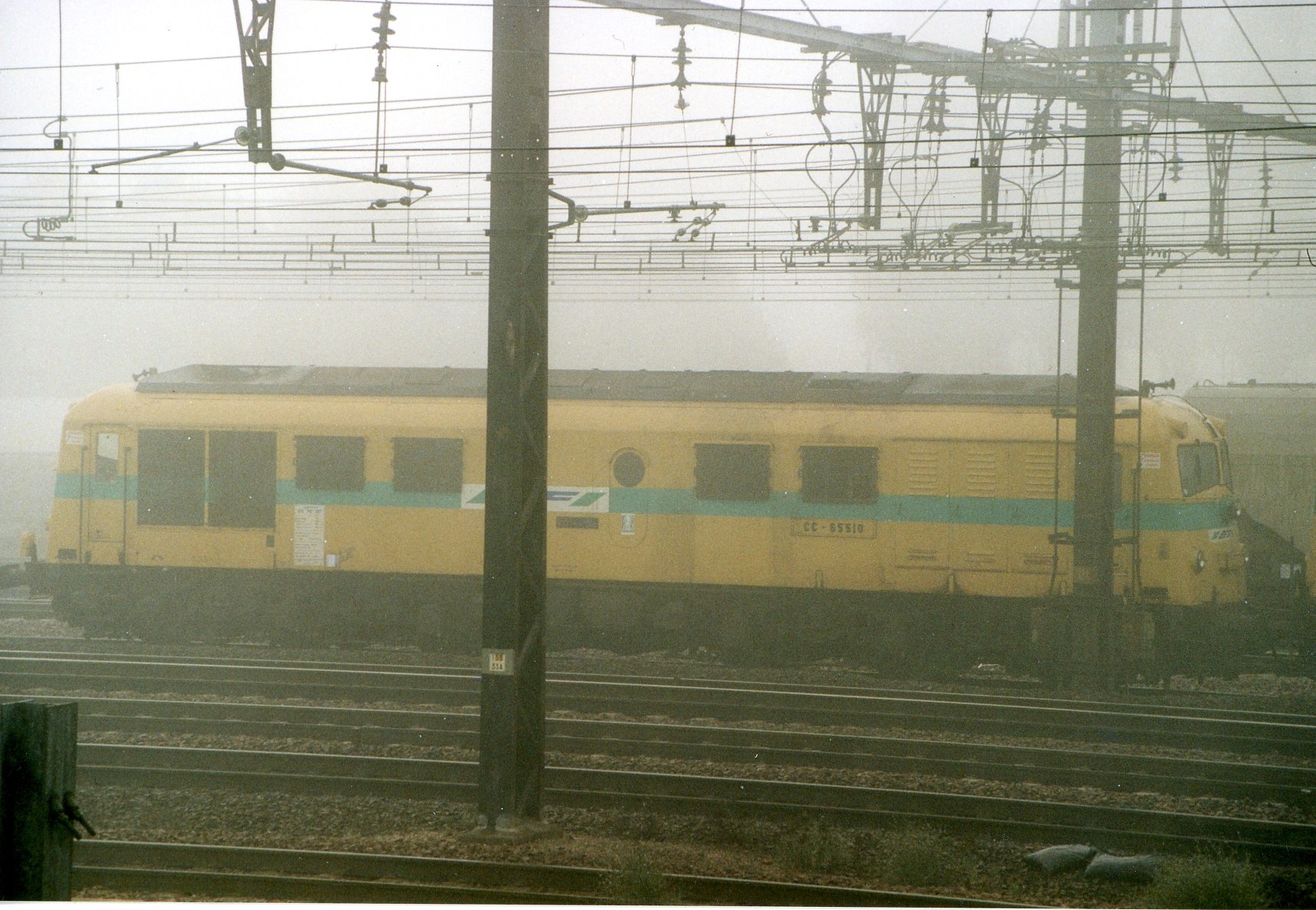 La ex-CC65510, alors AT3 PSE 003, dans la brume matinale de Laroche-Migennes en Septembre 1999.