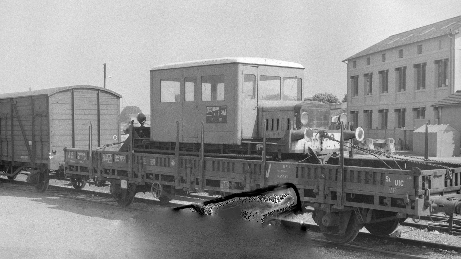 Une curiosité de nos jours mais il était fréquent à l'époque de rencontrer du matériel privé sur les voies SNCF concernant l'entretien des voies, preuve que la SNCF n'avait pas le monopole.