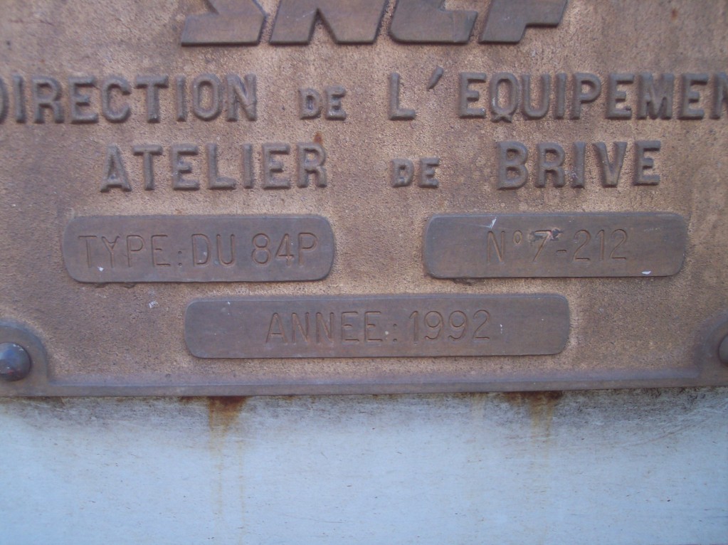 (SNCF Atelier de Brive - type DU 84P - Nº 7-212 - 1992)