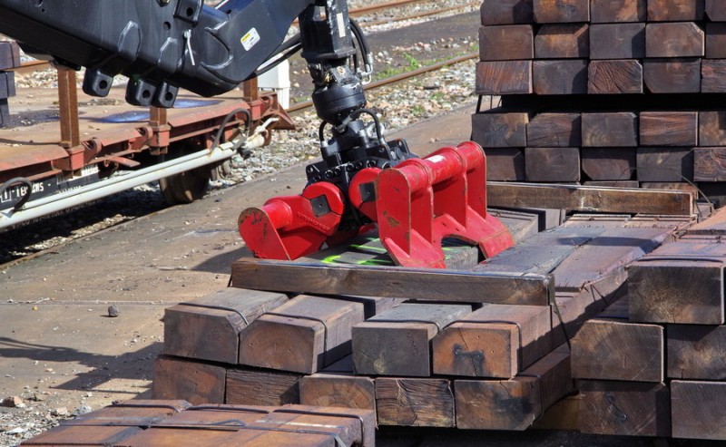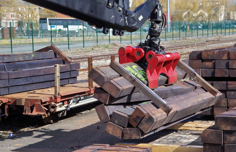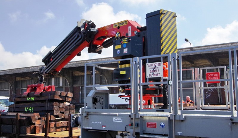 pour le transfert des traverses en bois neuves sur les deux remorques de la Draisine