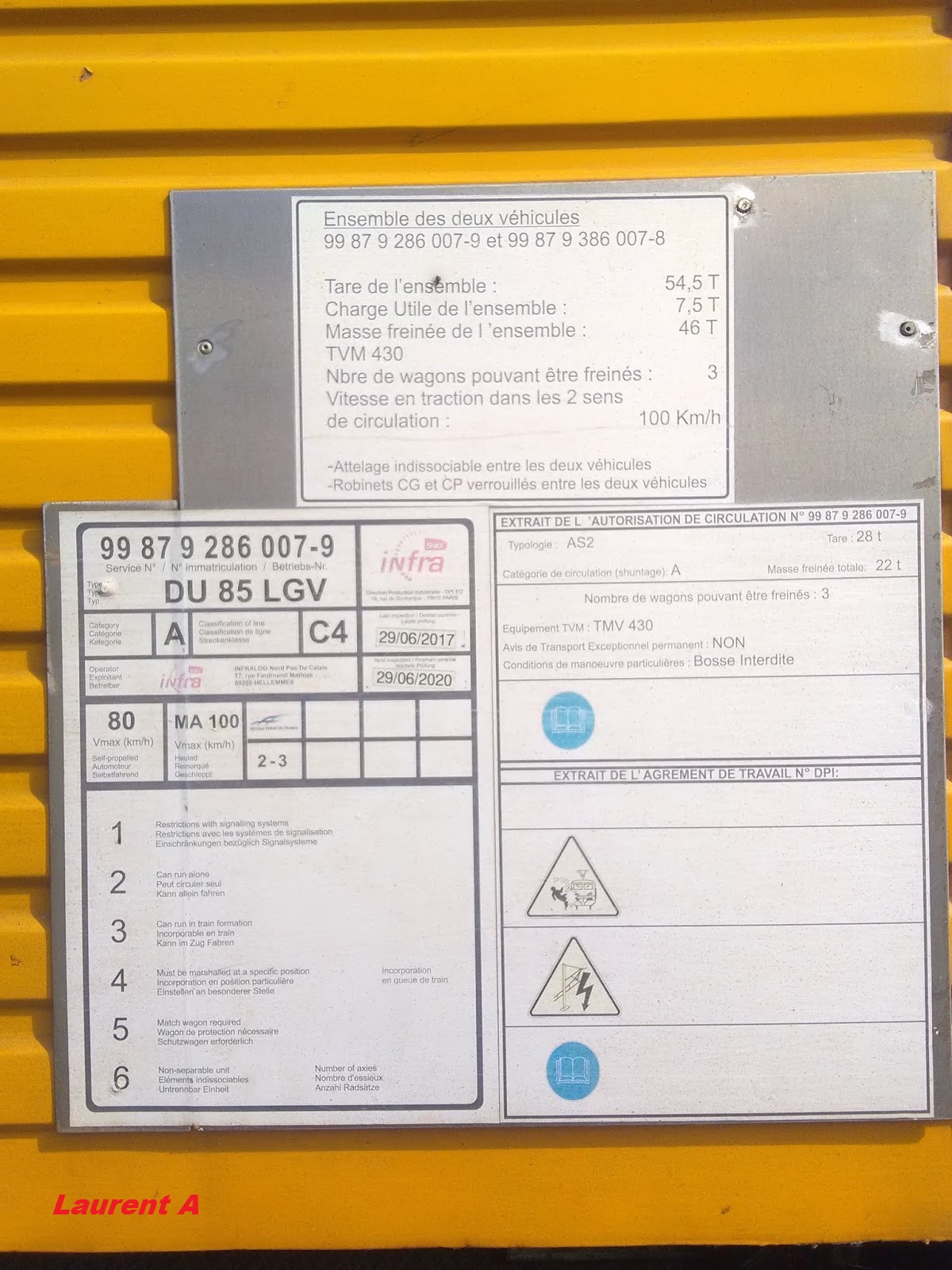 Il s'agit de la DU 85 LGV - 99 87 9 286 007-9 a Lille Délivrance le 18/06/2020 :