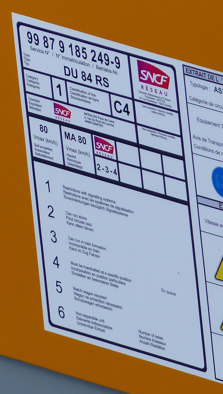 99 87 9 185 249-9 DU 84 RC - 9-749 SNCF RESEAU - Infralog Pays de Loire Nantes