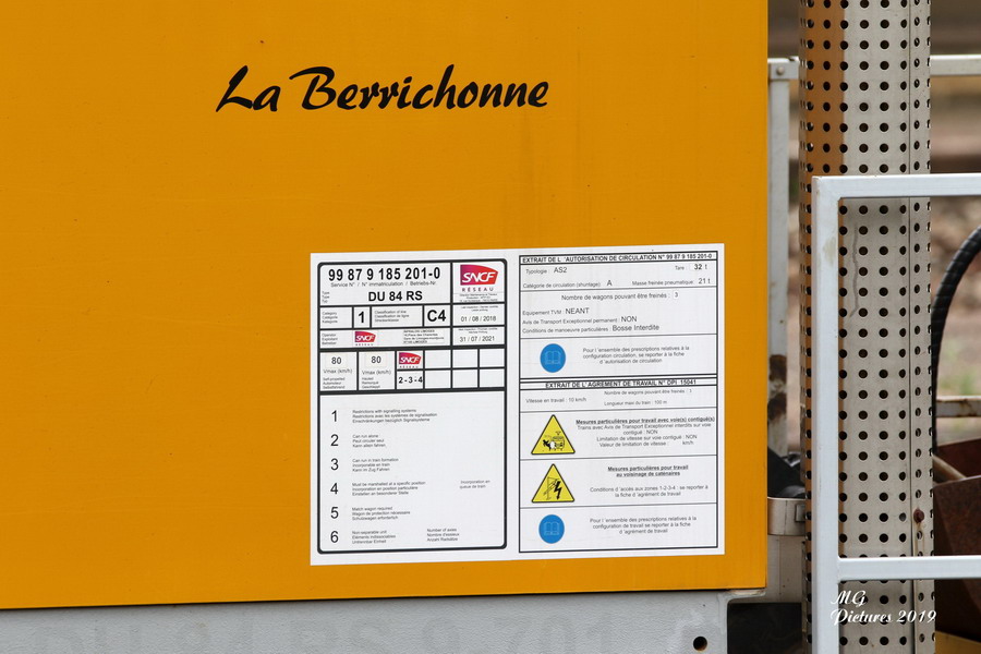 DU 84 RS - 99 87 9 185 201-0 SNCF Réseau 9-701 "La Berrichonne" Saint-Sulpice-Laurière (87) le 15-06-2019