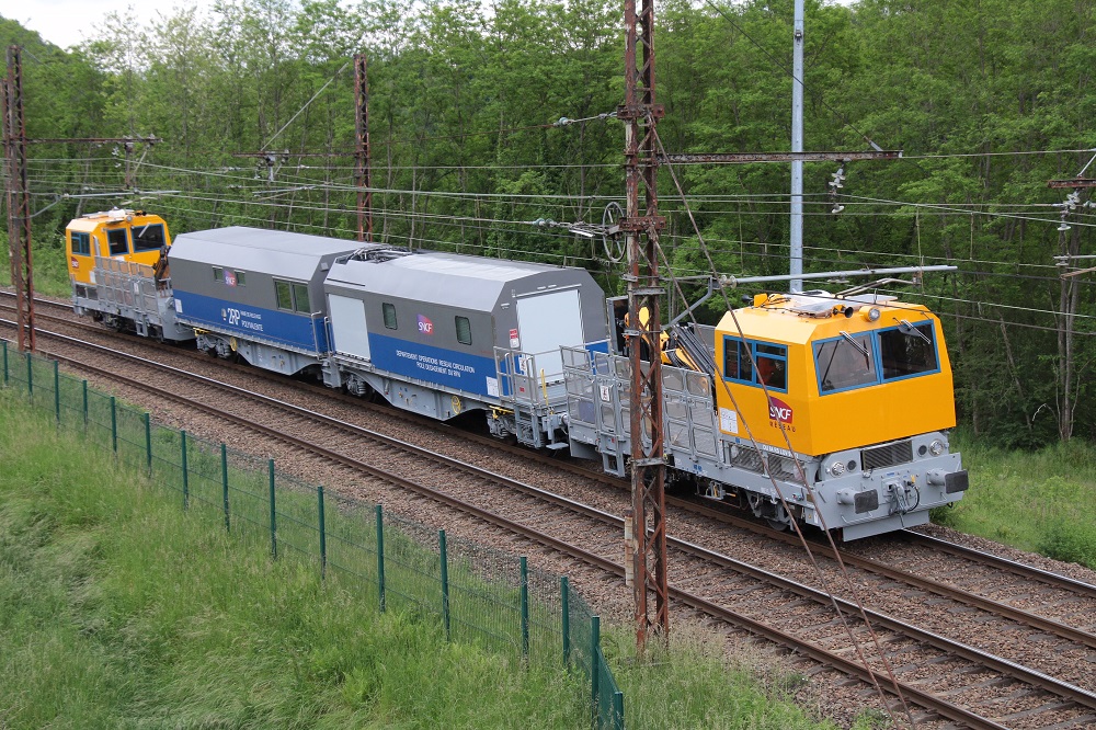 En essais vers BRIVE : Les DRAISINES LGV 9.803 et 9.804 encadrent le