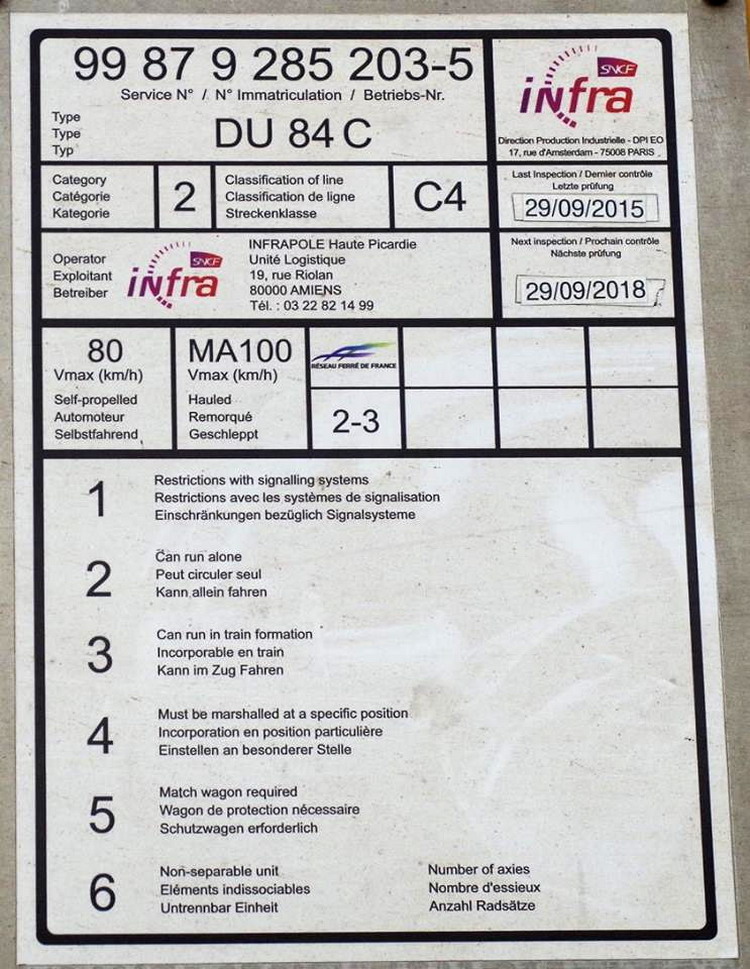 DU 84 C - 99 87 9 285 203-5 - SNCF 7-103 AM (Atelier de Brive en 1985) Point d'attache Amiens