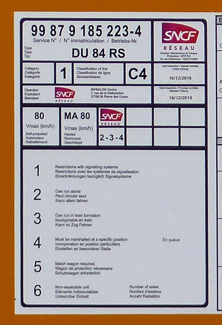 DU 84 RS - 99 87 9 185 223-4 - TR 9.723 SNCF RESEAU
