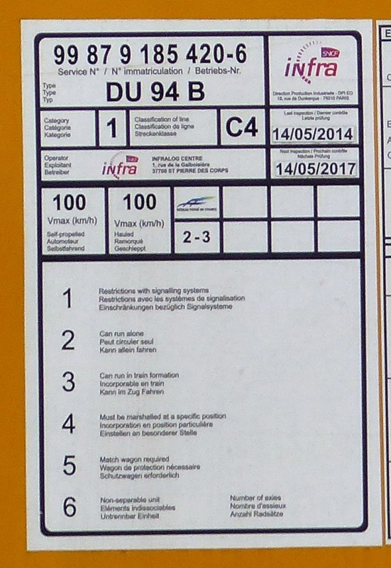 Une nouvelle draisine se cache au Crem DV13 de Saint Pierre des Corps la DU 94 B - 99 87 9 185 420-6 - 8-130-TR entre les