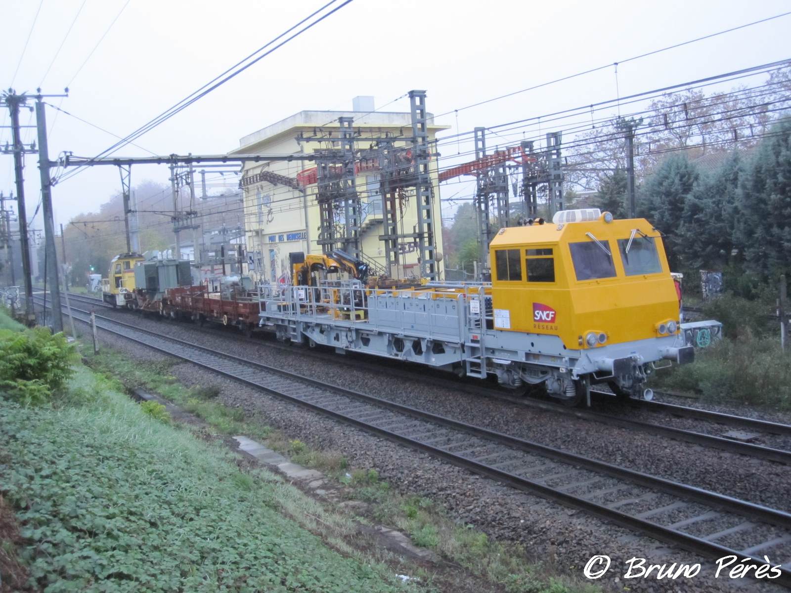 J'ai aperçu ce convoi en ligne jeudi 11 novembre et j'ai pu le photographié le lendemain matin, stationné en pleine ligne devant la sous-station. La circulation est coupée du 11 au 14/11 en raison de la pose d'un pont routier au-dessus des voies à Escalquens (31) et du remplacement de ce transformateur.