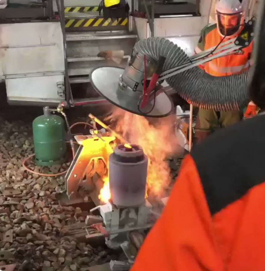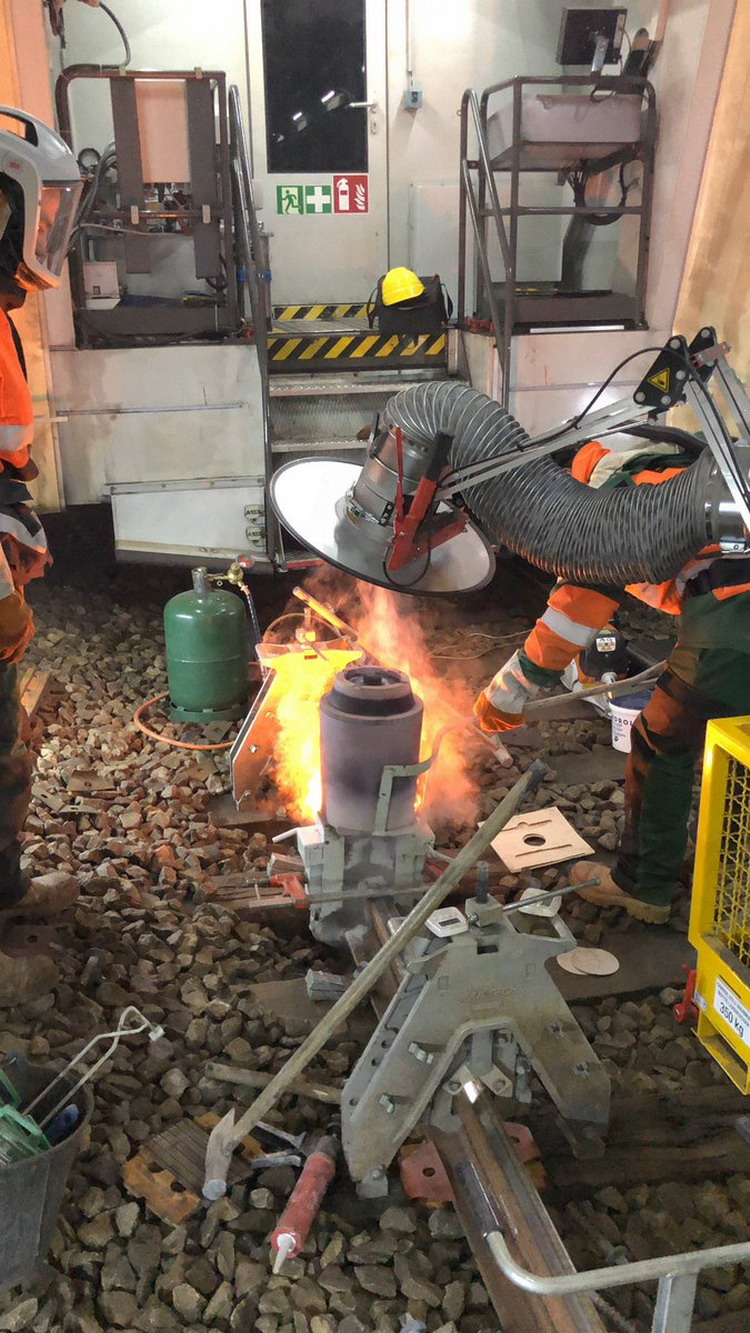 Nouveau test du Train Robel pour nos soudeurs. 1ère soudure de la nuit.