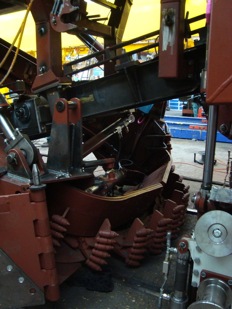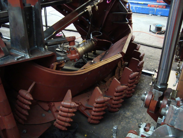 Elle dépose, dégarnie la voie puis dégarnie les tête de traverses, repose des traverses, bourre, stabilise, re bourre et re stabilise