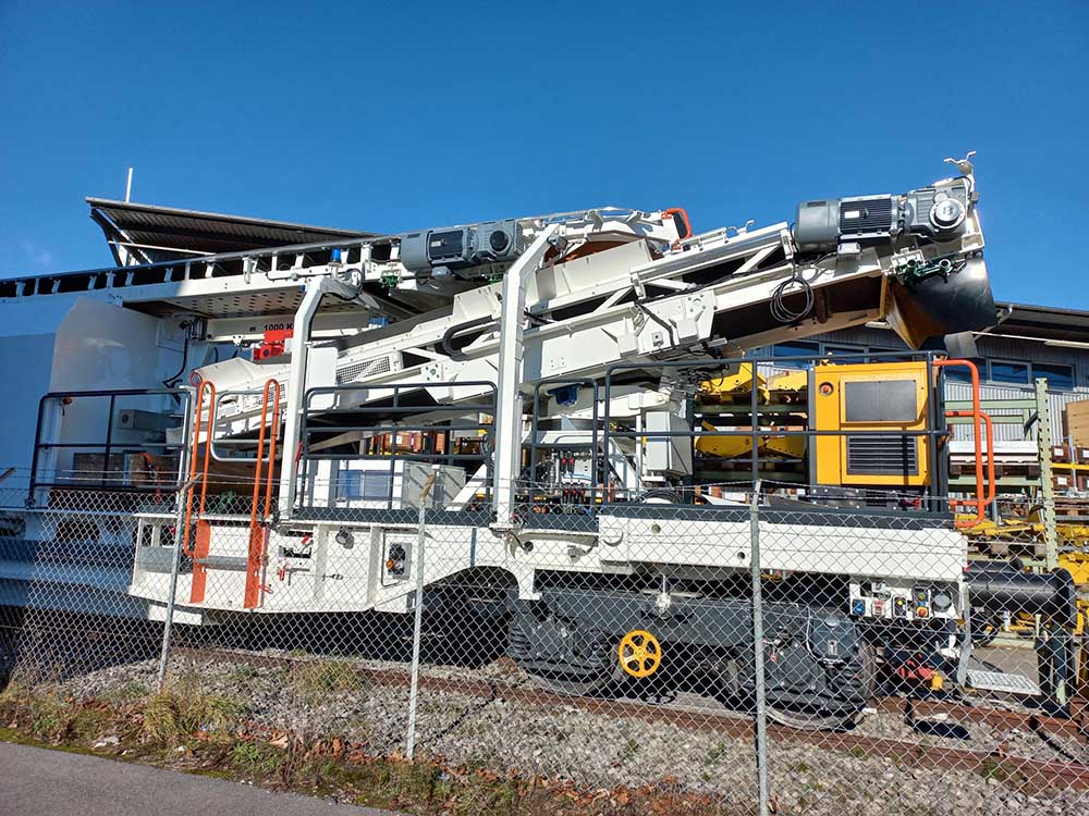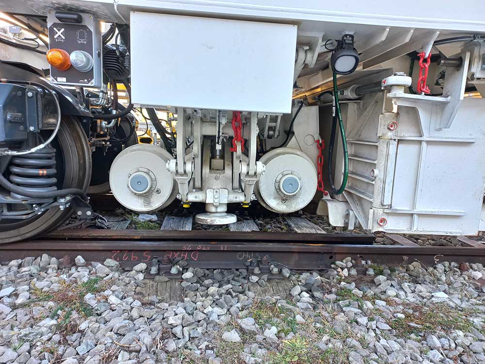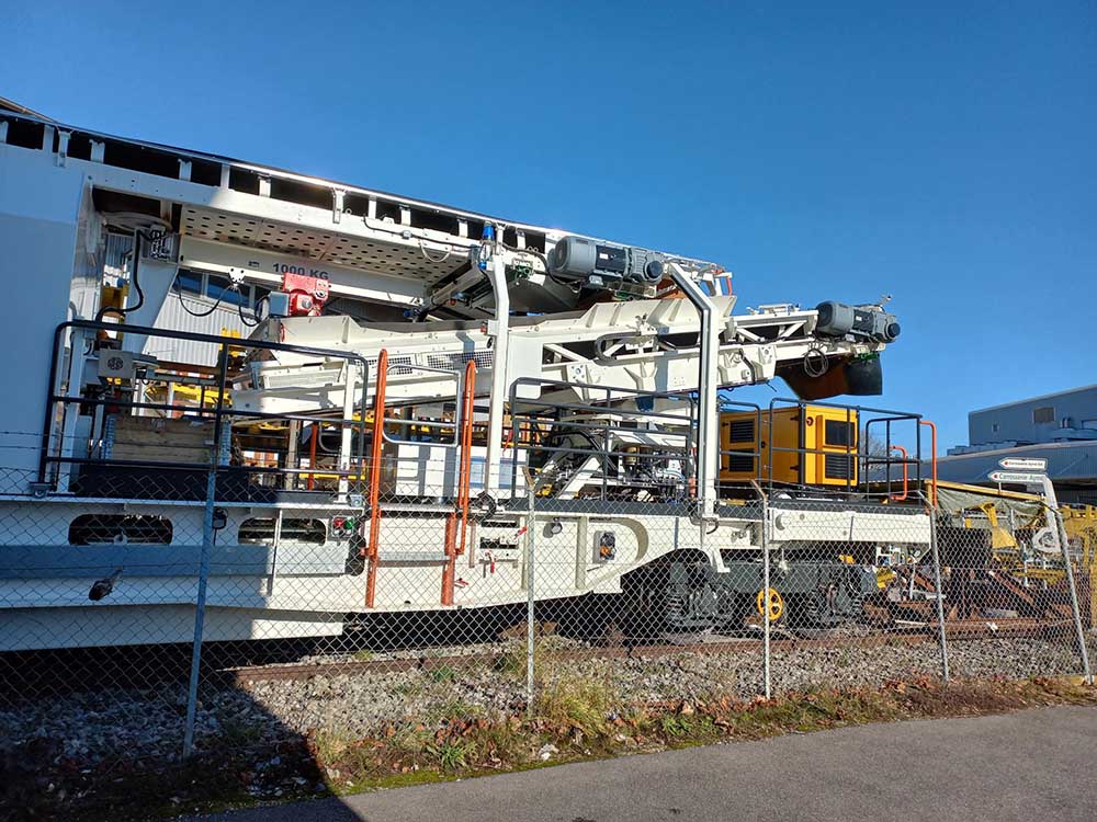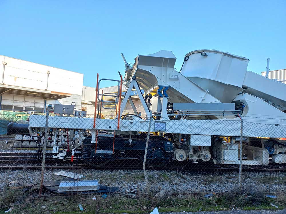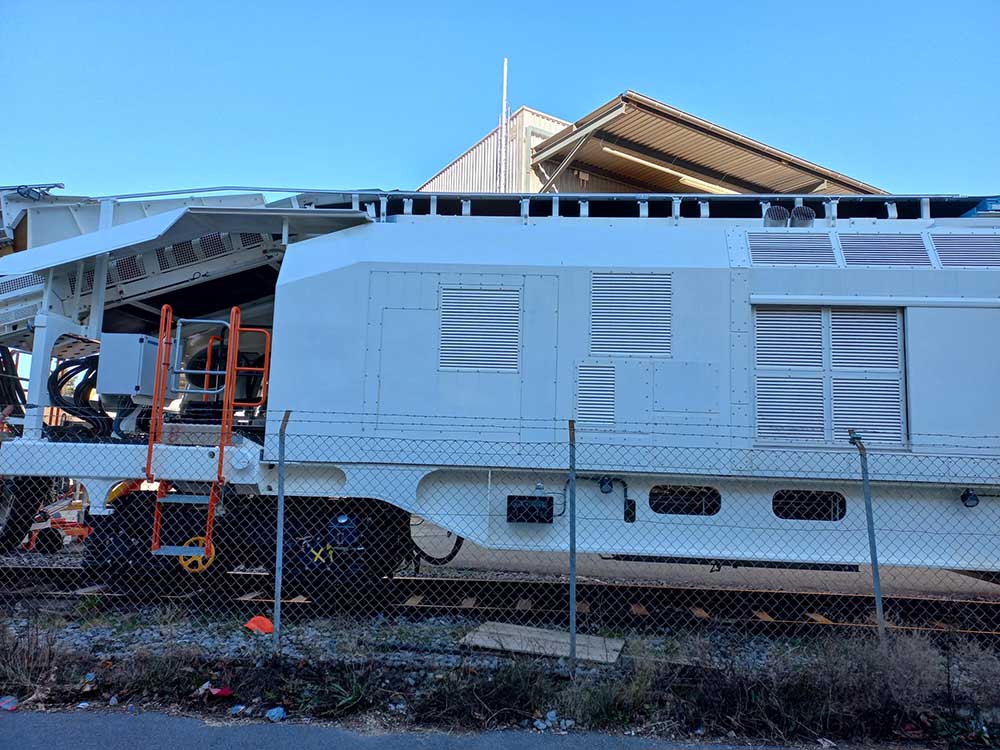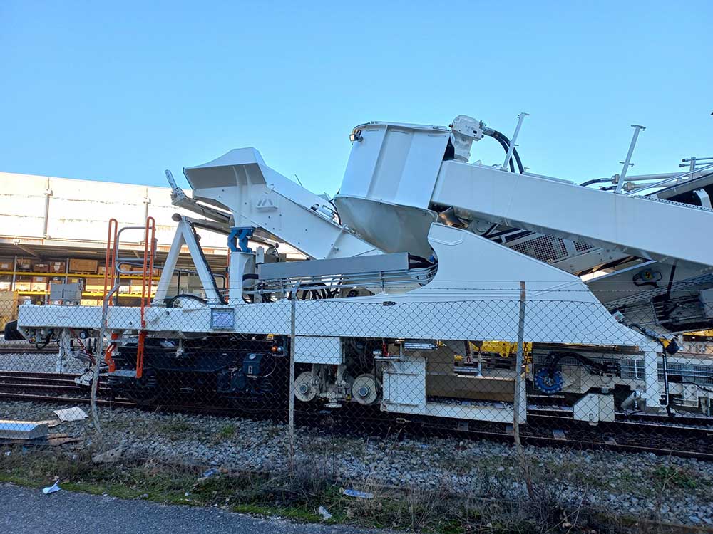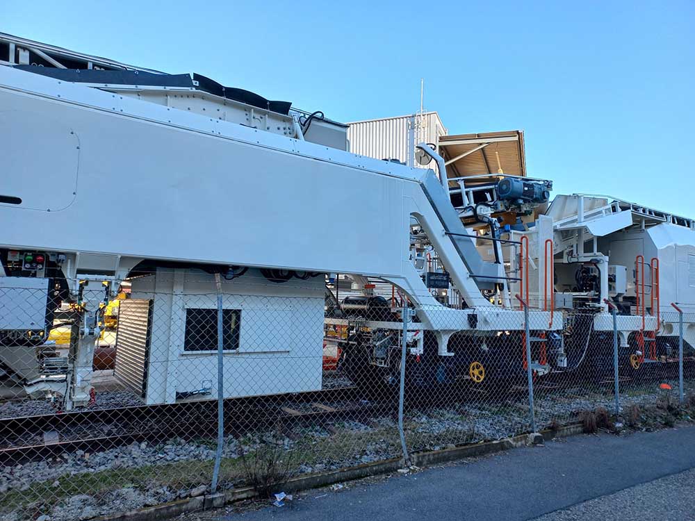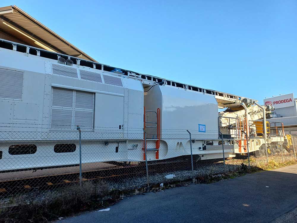 CGF, il y a 2 cabines, l'alimentation, la réserve de carburant et la génératrice électrique se trouvant derrière la chaîne de dégarnissage par rapport au sens de marche. Elle ne possède qu'un seul crible, a priori comme celle d'ETF.
