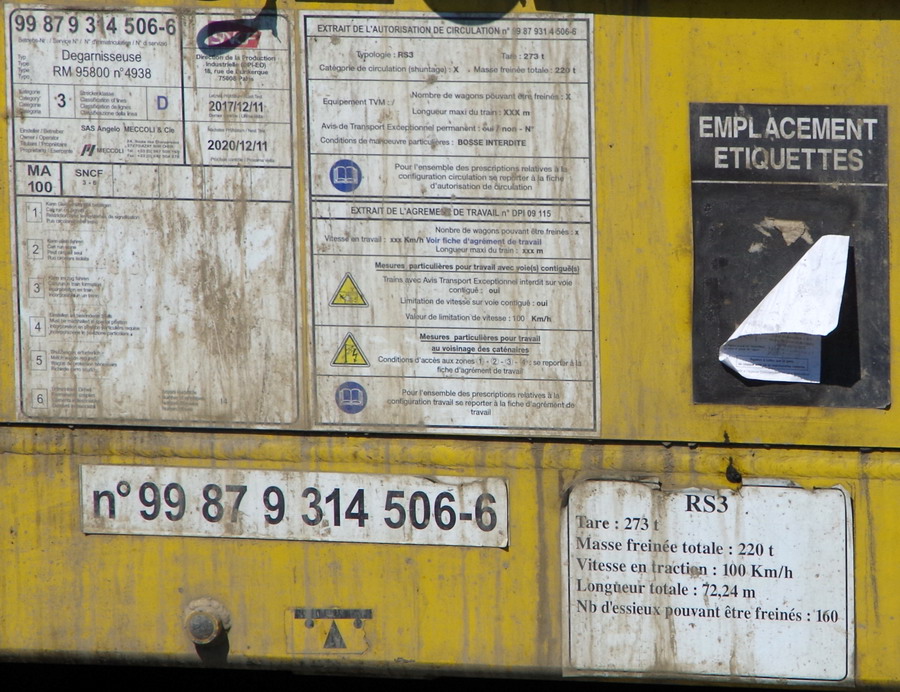 Dégarnisseuse RM 95-800 AHM - 99 87 9 314 506-6 Meccoli (Plasser & Theurer n°4938)