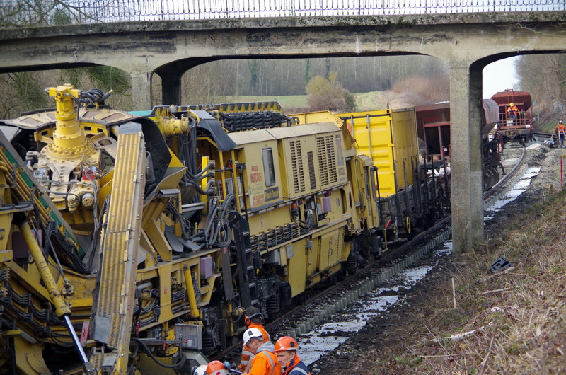 Retour de la dégarnisseuse sur la base de travaux Meccoli/ETF de la gare de Laon le 24 avril 2018