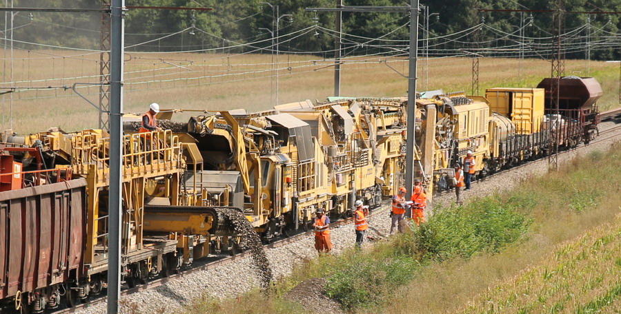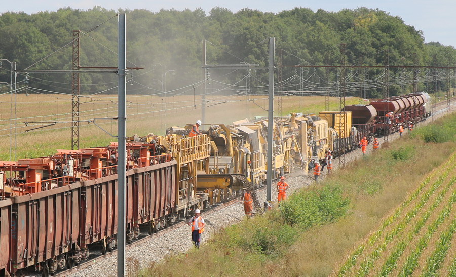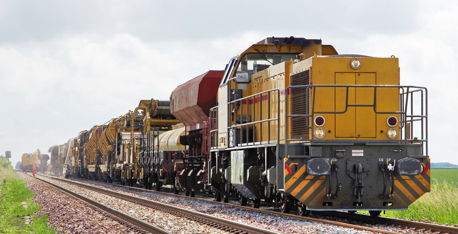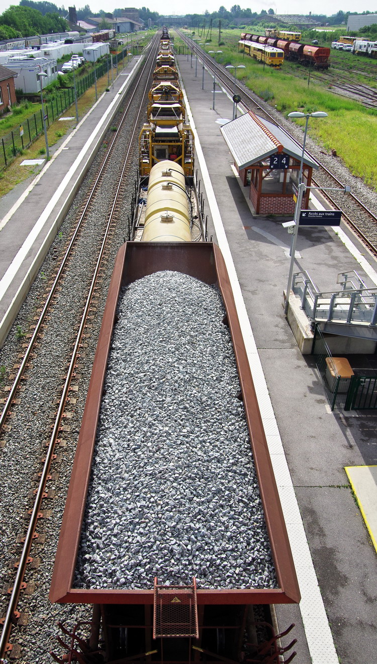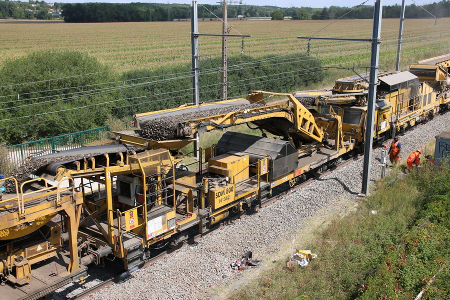 Retour de la rame de la Dégarnisseuse train n°DK2 sur la base de travaux de la gare de Chaulnes le 01 juin 2018