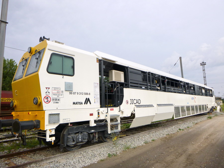 Voici le wagon JICAD II avec le JICAD I - 99 87 9 312 505-0 sur la base de travaux ETF de Verberie (60) près de Compiègne pour les travaux