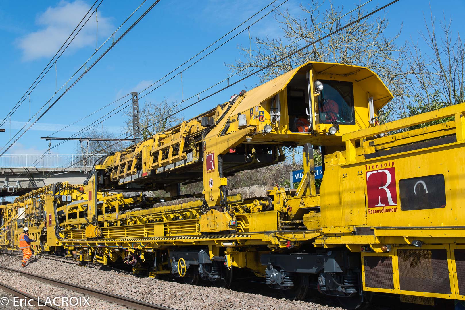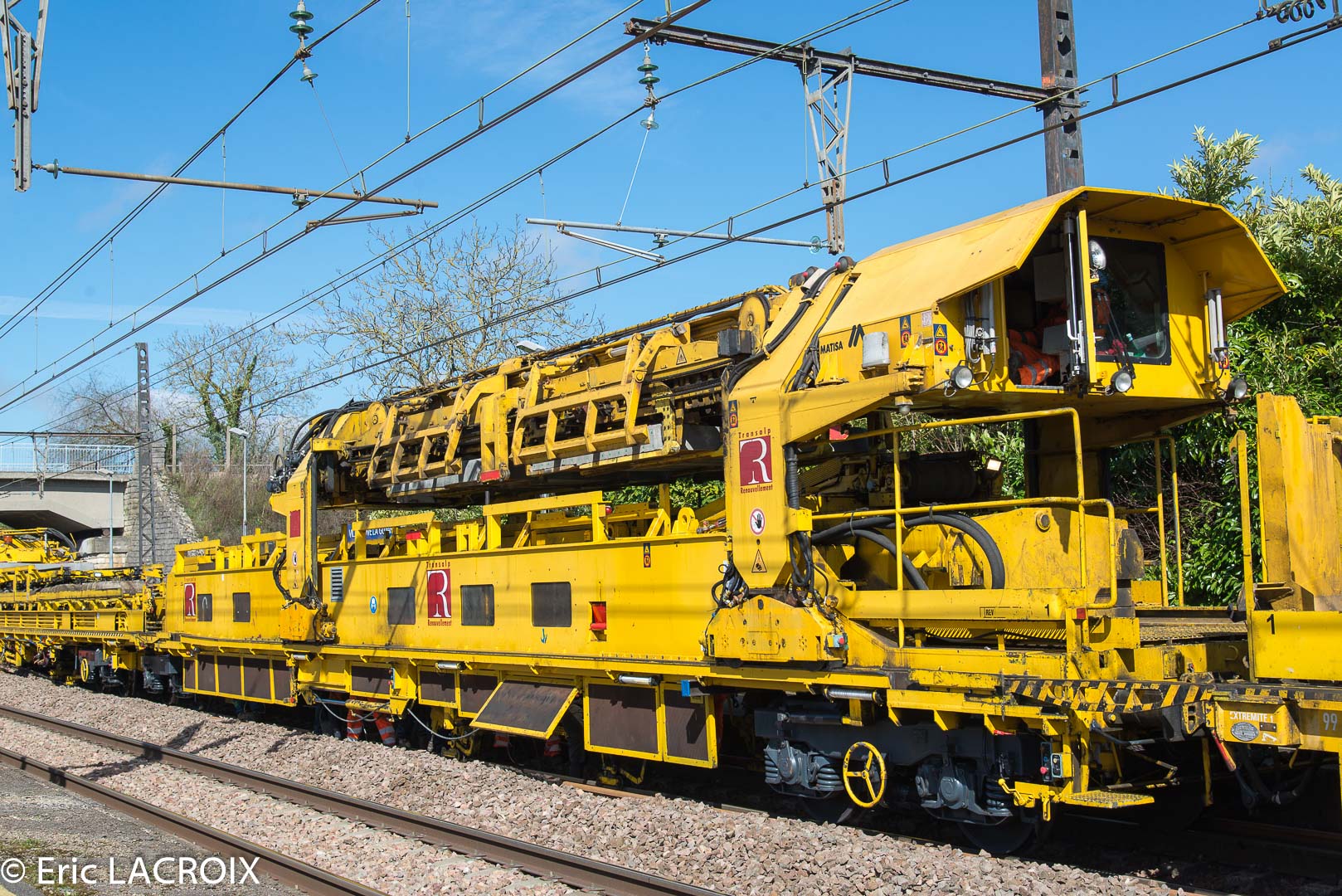 Train de renouvellement P95 MATISA Transalp Renouvellement à Villeneuve la Guyard le 22 mars 2017.
