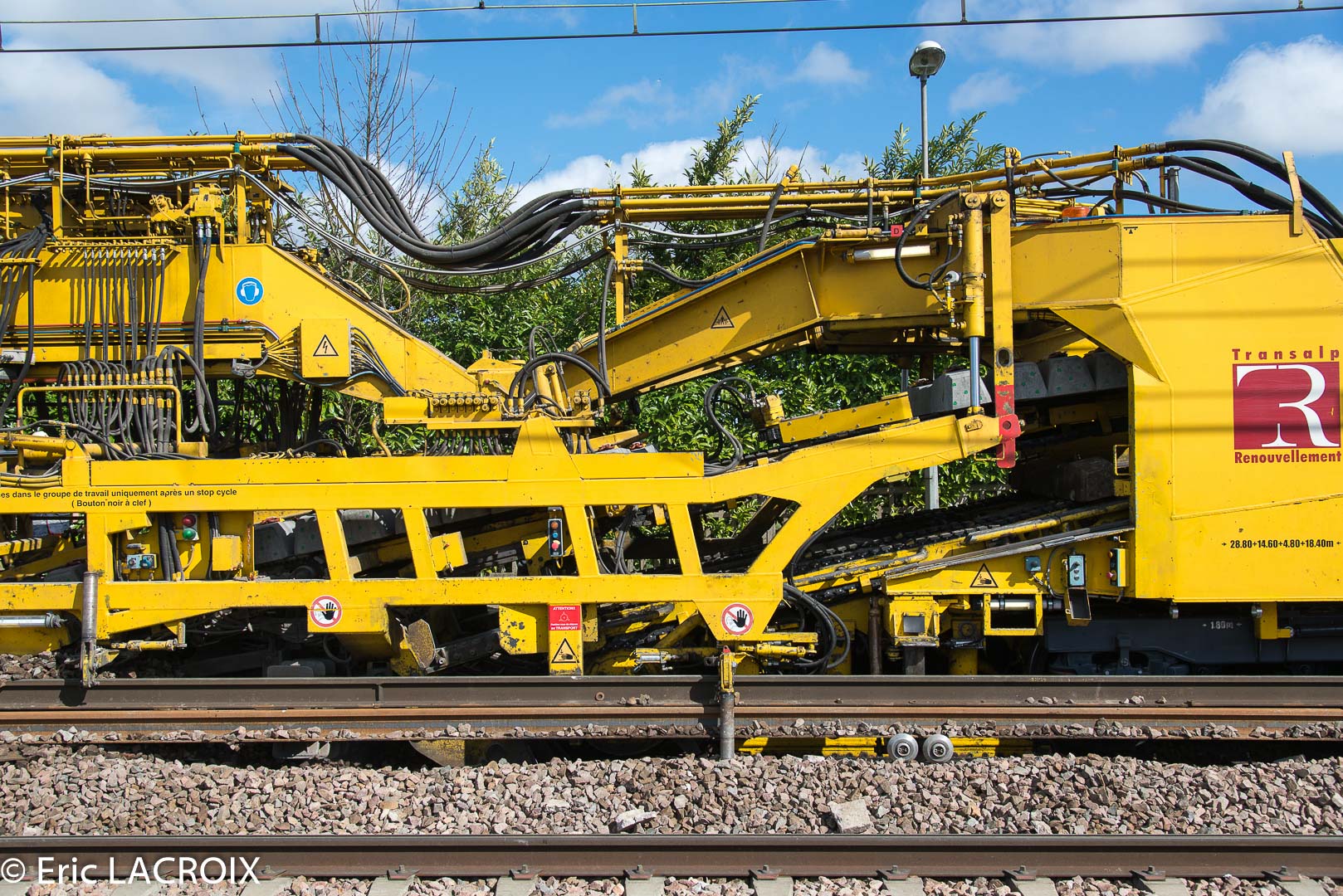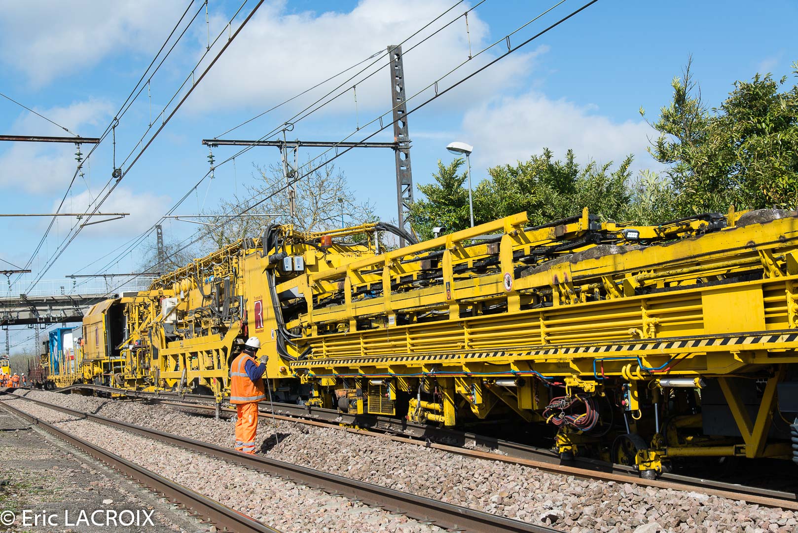 Train de renouvellement P95 MATISA Transalp Renouvellement à Villeneuve la Guyard le 22 mars 2017.