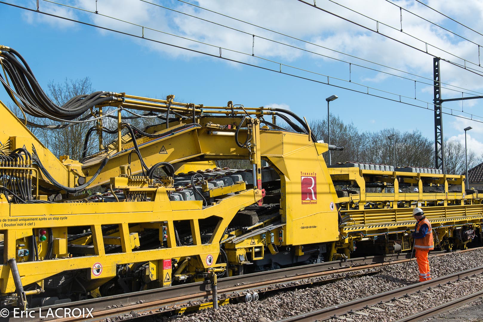 Train de renouvellement P95 MATISA Transalp Renouvellement à Villeneuve la Guyard le 22 mars 2017.