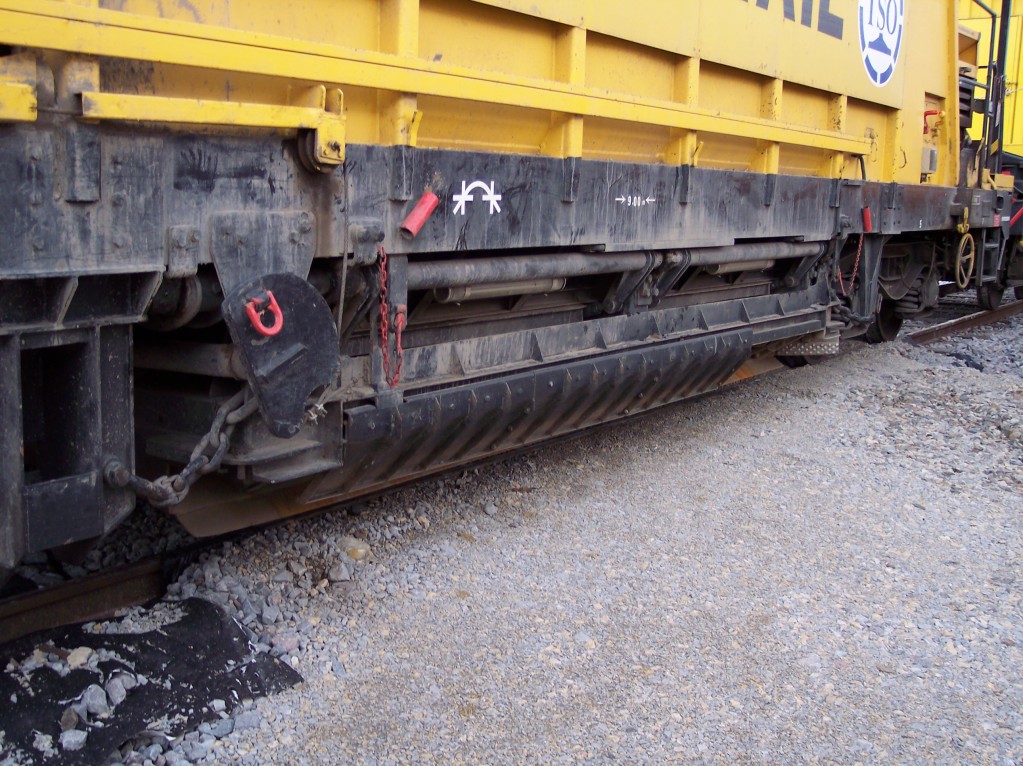 - la première est humaine : l'équipe de tire-fondeurs a parfois du mal a suivre l'avancée du convoi et provoque son arret au moyen d'une traverse transversale qui est là pour empêcher que le convoi ne passe sur le corps de ceux qui dévissent les tirefonds et qui ramassent les attaches.