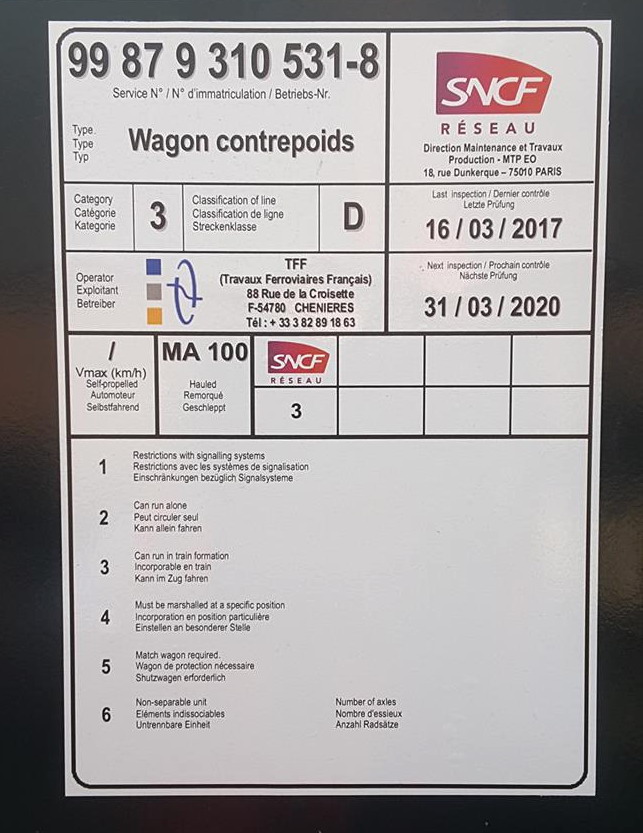 Wagon porte flèche RSO - 99 87 9 310 530-0 TFF (ex 31 82 351 0 157-9 transformé en 2016 par Rolanfer) Longueur 25,240 m - Tare 27 t