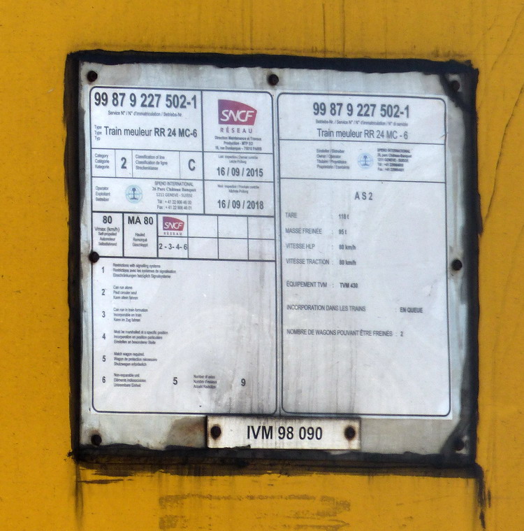 - 99 87 9 227 502-1 Speno RR 24 MC 6 (2014-10-04 Infrapôle LGV A de SPDC) (2).jpg (180.39 Kio) Vu 6232 fois