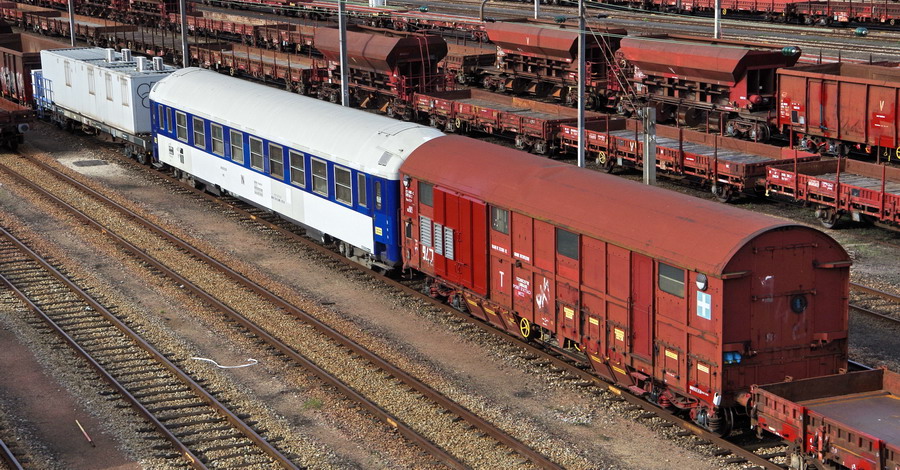 Le voici sortie de l'atelier de maintenance des wagons du Technicentre de Tergnier avec la voiture d'assistance et de secours ferroviaire