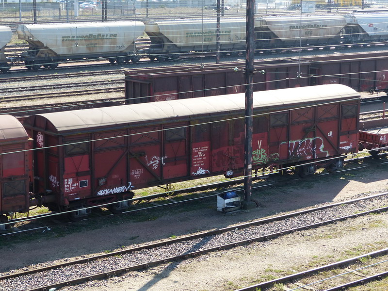 Voici deux photos du wagon couvert 80 87 979 2 449-1 avec le 450-9 à Saint Pierre des Corps le mercredi 19 mars 2014