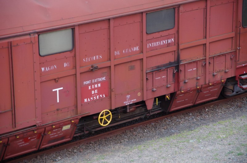 Voici le wagon couvert d'assistance et de secours ferroviaire 80 87 979 1 525-9 Uass H52 F F-SNCF Point d'attache EIMM de PRG-MASSENA