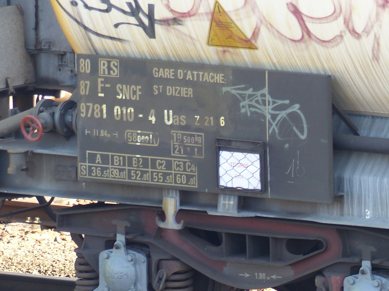 Voici le wagon citerne à boggies 80 87 978 1 010-4 Uas Z 21 6 - F SNCF-RS gare d'attache St Dizier