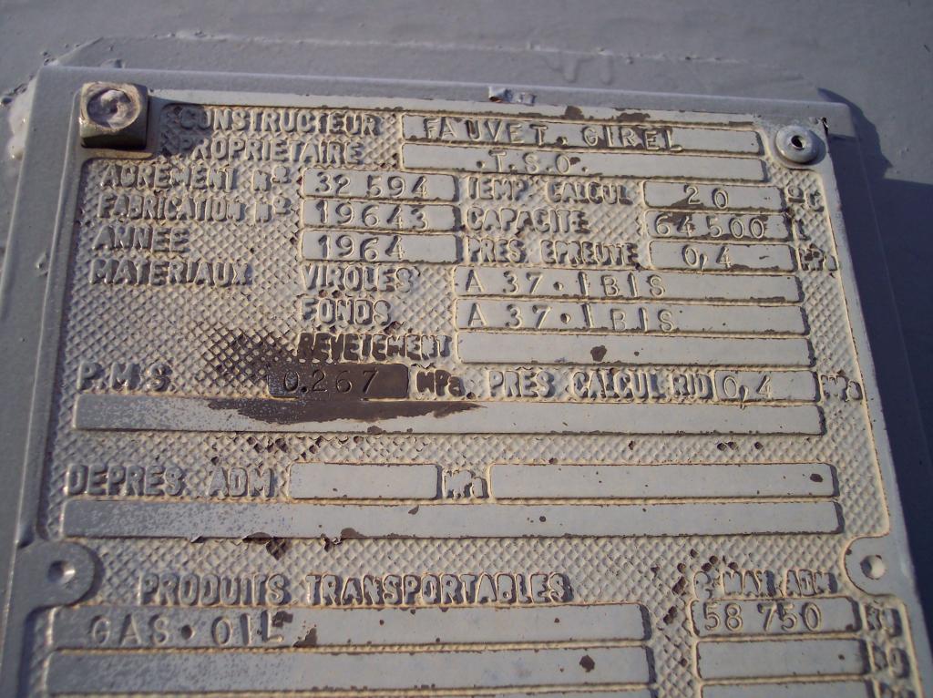 la plaque de la citerne