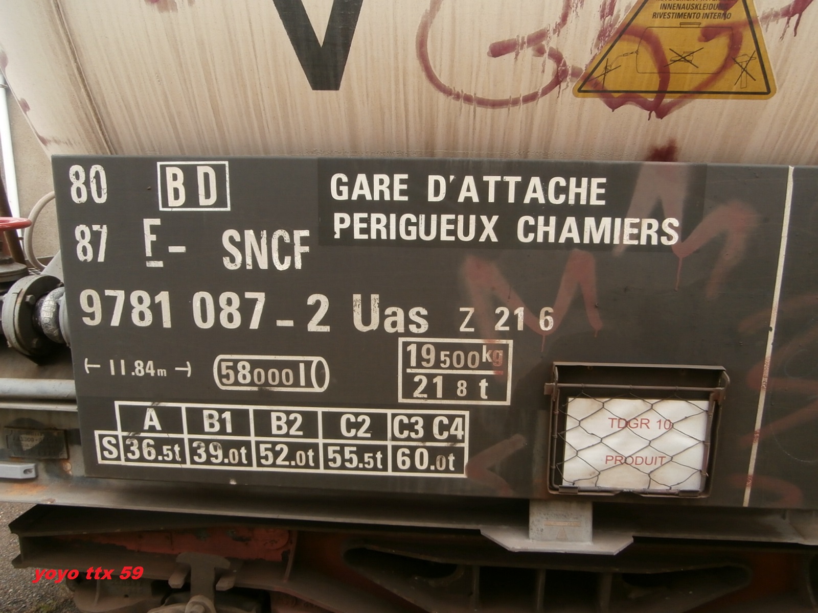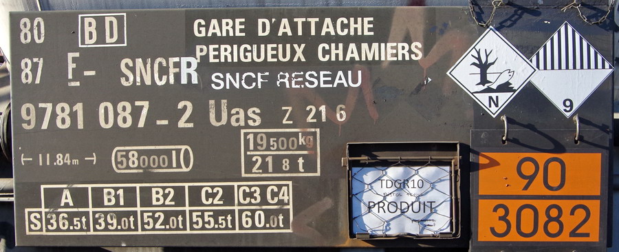 wagon citerne 80 87 978 1 085-6 Uas Z21 6 F SNCF-BD point d'attache Périgueux Chamiers