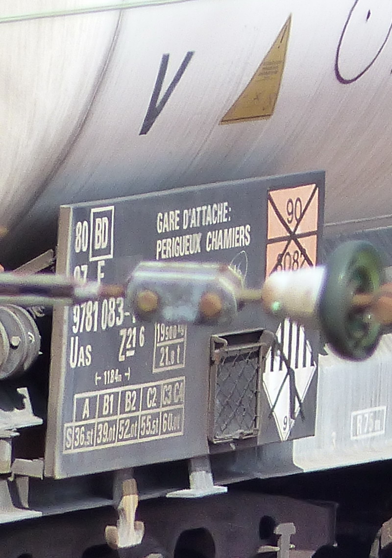 Voici le wagon citerne 80 87 978 1 083-1 Uas Z21 6 F SNCF-BD gare d'attache Périgueux-Chamiers