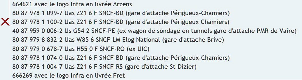 80 87 978 1 100-3 Uas Z21 6 F SNCF-BD (gare d'attache Périgueux-Chamiers) sur la rame du train désherbeur TDGR 4