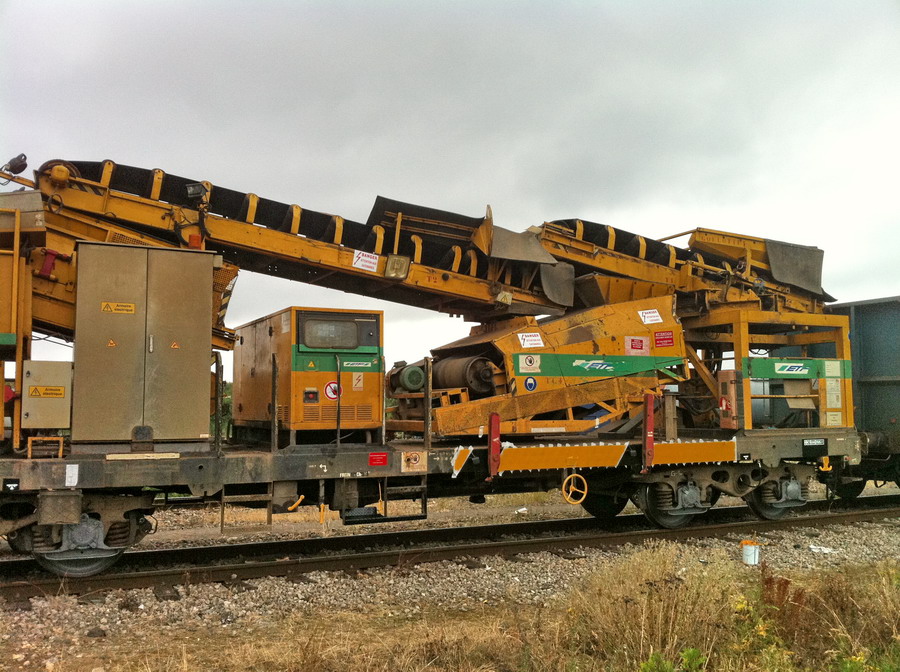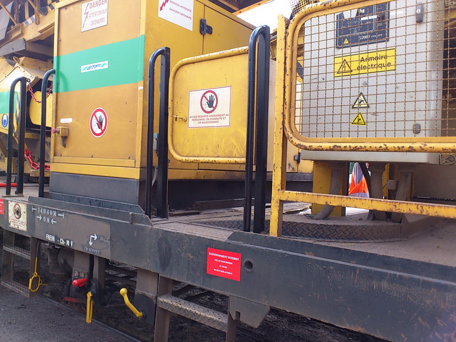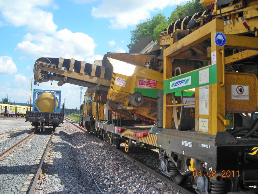 Plusieurs wagons énergie (appelés aussi tapis canon), destinés à fournir l'énergie nécessaire aux différents tapis se trouvant sur les tombereaux, sont positionnés dans le train de dégarnissage chargé du RVB entre Toulouse et Escalquens (automne 2007).