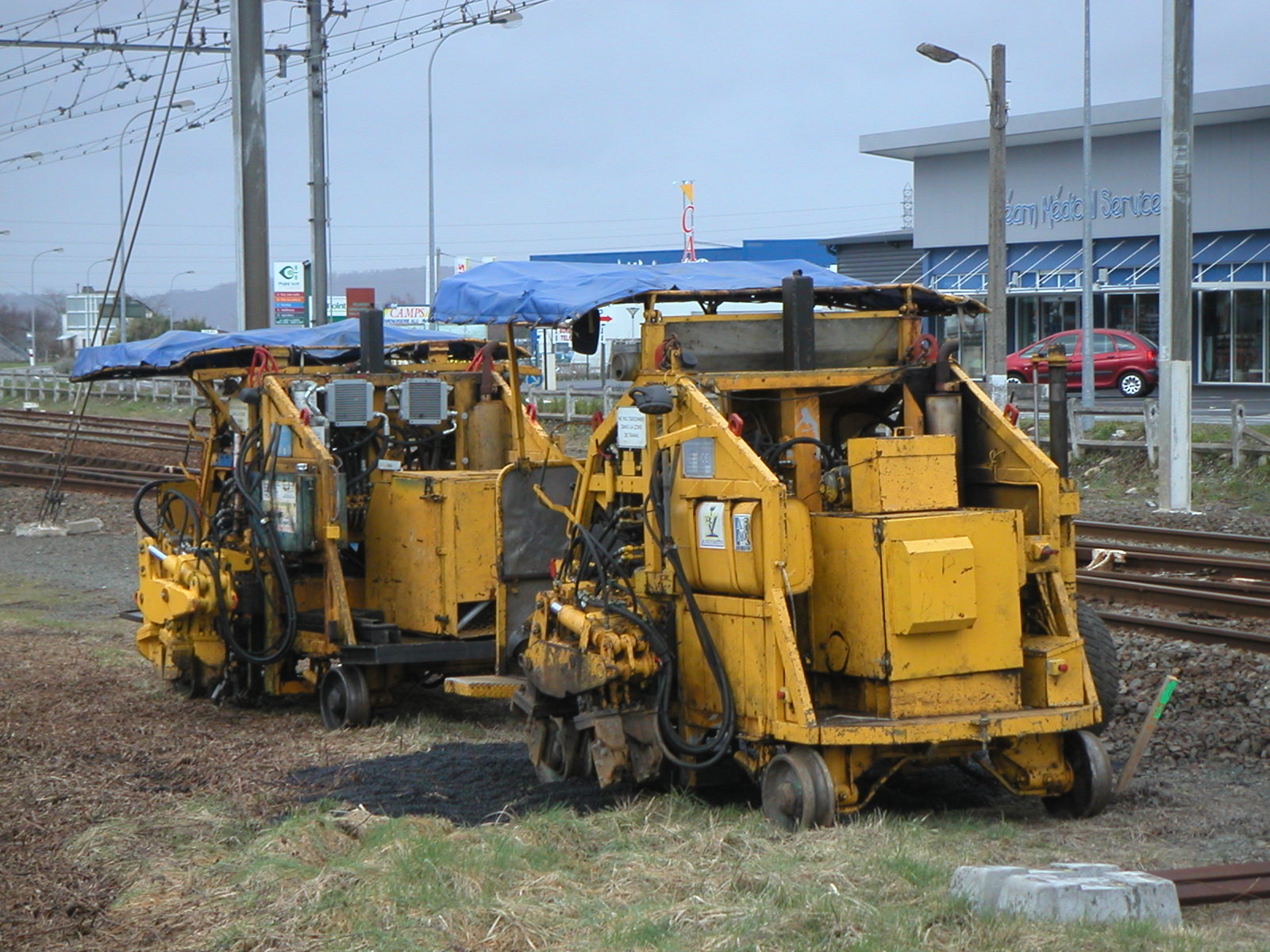 Vu sur une autre photo de MRT (lorry 4 de la SNCF), aucun ne possède de 2ème paire de roues; je suppose qu'il est possible d'utiliser la pince comme troisième point d'appui pour ripper l'engin perpendiculairement à la voie (les roues se tournant à 90°) :spamafote:
