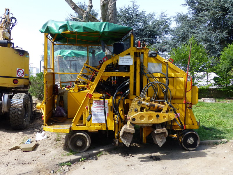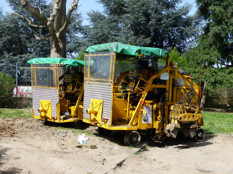 Salut à tous Voici le MRT 2 avec le MRT 93007-385 de Meccoli et la pelleteuse Geismar KGT V n°4639 qui travaille Photos prisent le mercredi 15-04-2015 pour le RVB de la ligne de Poitiers en sortie de gare de Tours (+ ou - 1km)