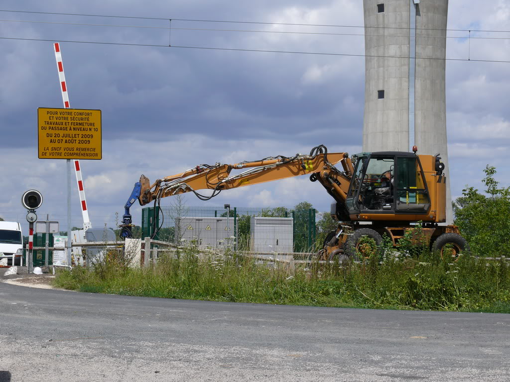 Cette pelle se trouvait stationnée près du PN permettant de franchir les voies de la ligne Trilport-Reims.