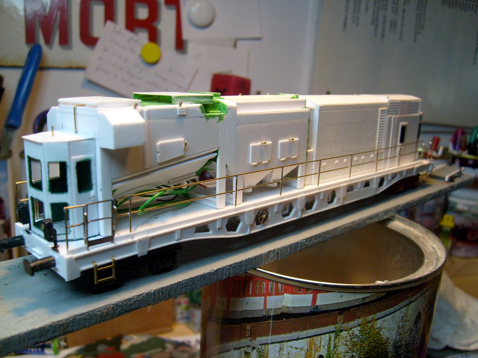 Ce n'est pas totalement du TTX, même si ça y ressemble et que c'est tout à fait dans le style des wagons laveurs de rails ou autres. En tous cas, je ne résiste pas au plaisir de vous montrer le dernier chantier en cours de Christian Vallée : le wagon aspirateur de la SNCF.