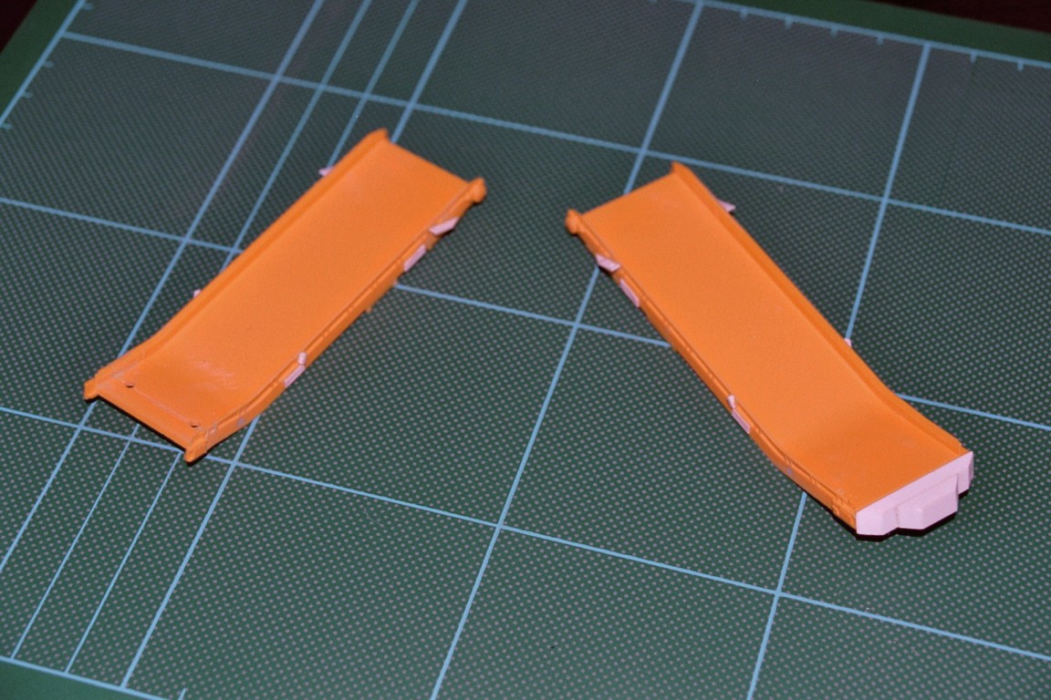 elles rentrent dans le coffre.Donc, j'ai dû coller un tronçon d'EVG 227 de L: 3mm sur lequel les grilles d'aération viennent prendre appui (j'ai appliqué sur les grilles un lavis rouille HB 113 + HB 33).Il y aura des photos quand j'aurai terminé la pellicule (wagon ventilateur et support de VAD en plus).