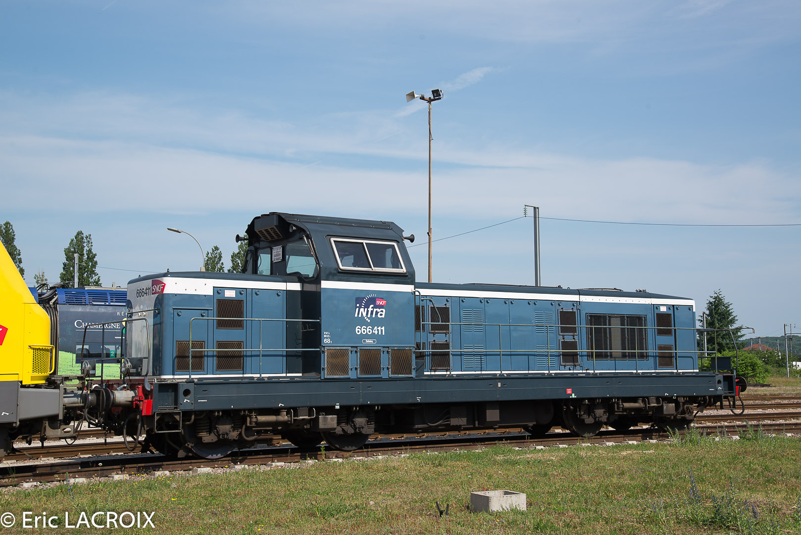 voici les bb 666411 et 666442 vu au pied du PRS de Culoz sur le faisceau équipement (UM en tête du train désherbeur)