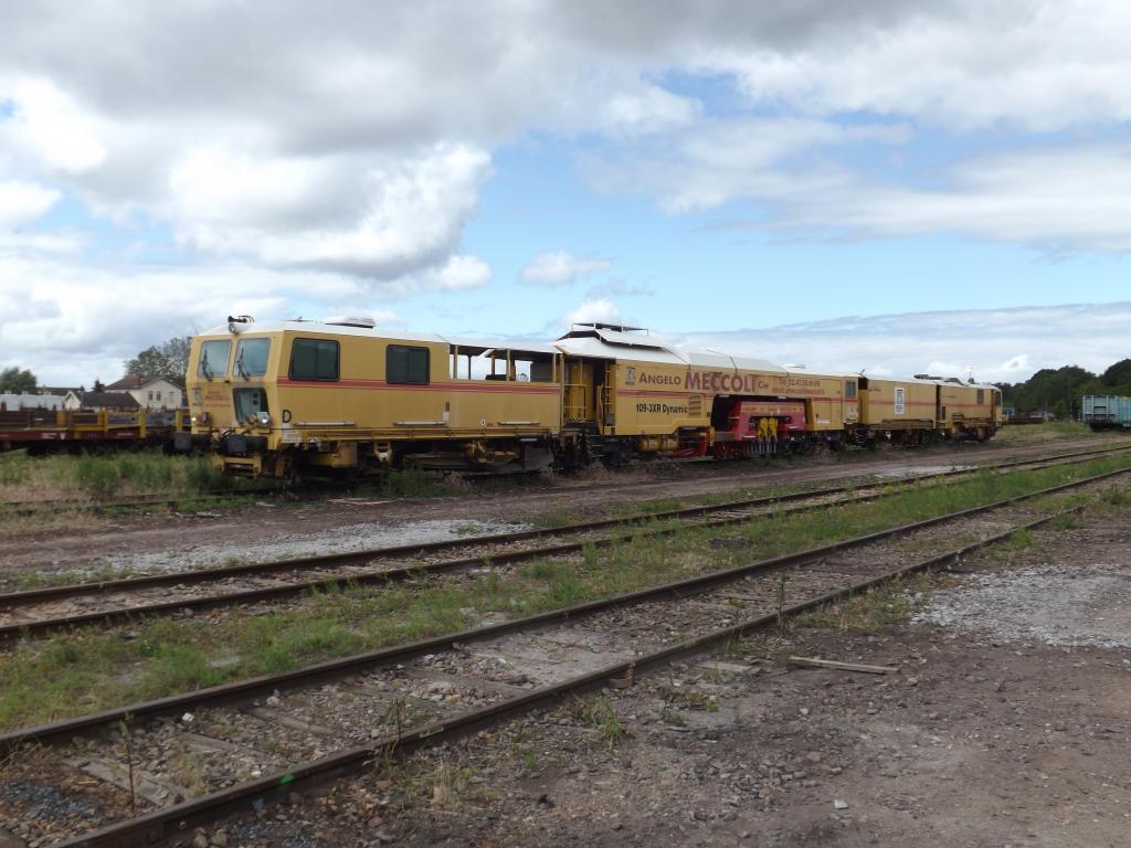 Voici la bête de 166t de Meccoli Bourreuse 109 3XR Dynamic - 99 87 9 121 501-0 qui arrive du nord pour un garage à l'ouest de la zone de