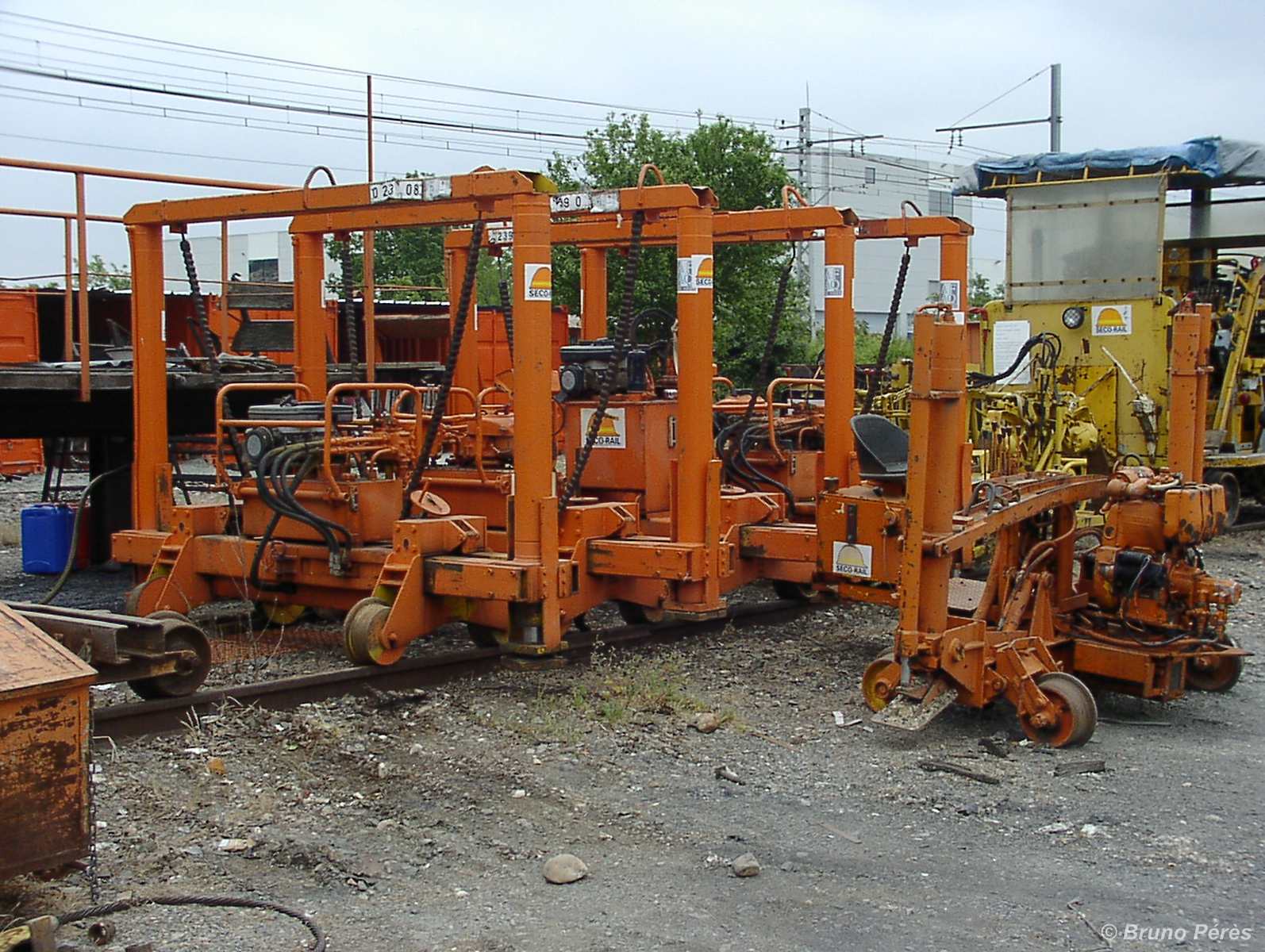 Ce message de Guillaume m'a rappelé que j'avais quelques photos de portiques dont je n'arrive ni à trouver le type, ni a trouver l'usage. Étant donné qu'ils ressemblent étrangement aux Fassetta CRV 801 de Guillaume, je pense qu'il s'agit du même type, mais de fabrication antérieure. Bien entendu, j'ai aussi ma petite idée sur leur utilisation et je pense qu'il s'agit de portiques servant au ripage de la voie.