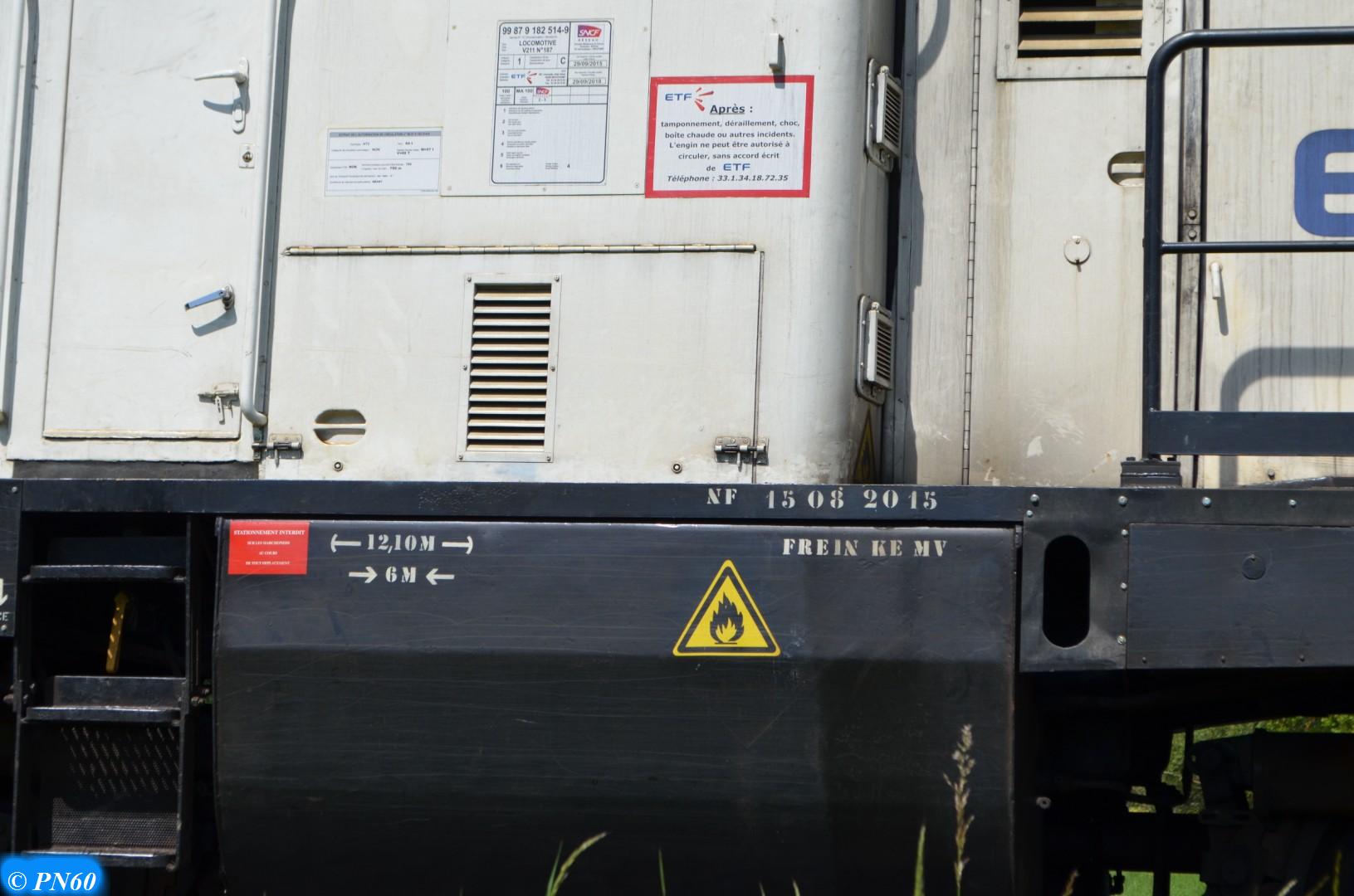 Vues rapprochées de la V.211 99 87 9 182 514-9 d'ETF prises le 22 mai 2017 sur la ligne 15 à Brainville sur Meuse.
