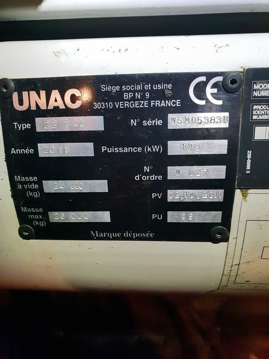 Voila une photo d'une pelle UNAC 22 TRR d' ETF avec son agrément et plaque constructeur.