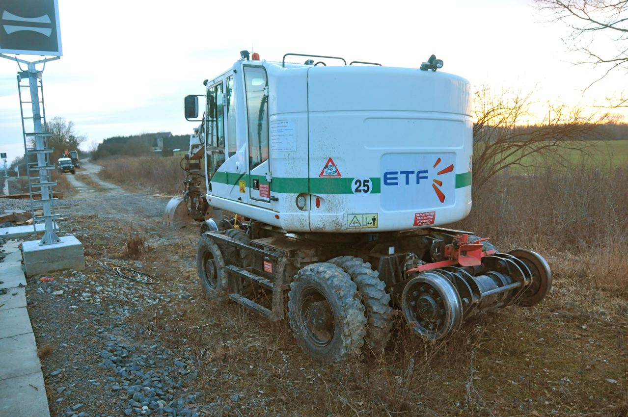 Voici une pelleteuse - non identifiée - ETF au bord de la bretelle LGV-Est <=> Reding