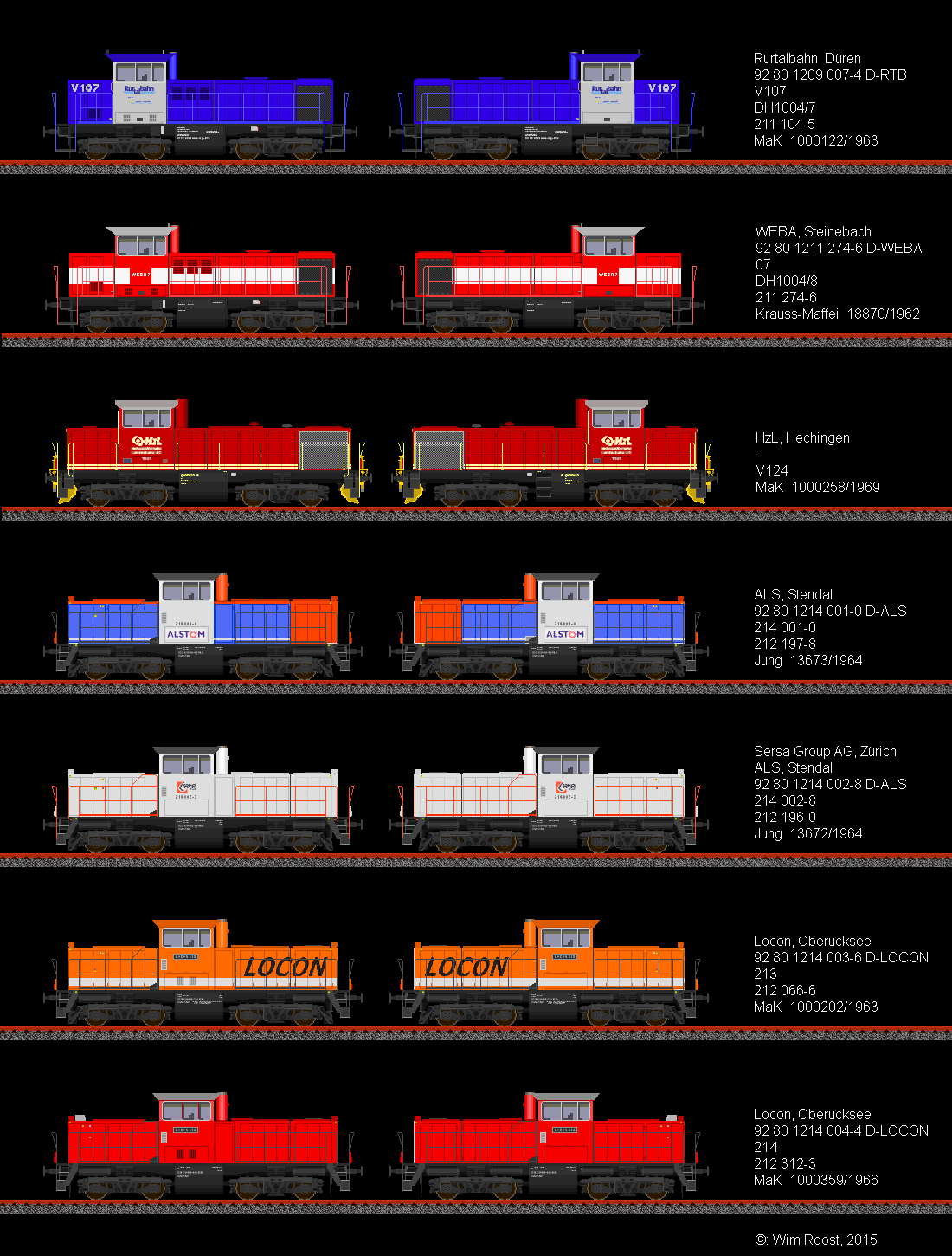 première la seule 211 transformé par Henschel et les 8 211 transformé par OnRail/MaK (Regiolok DH1004). Et après ça les 212 transformé de Alstom Stendal/Gmeinder Mossbach (214)