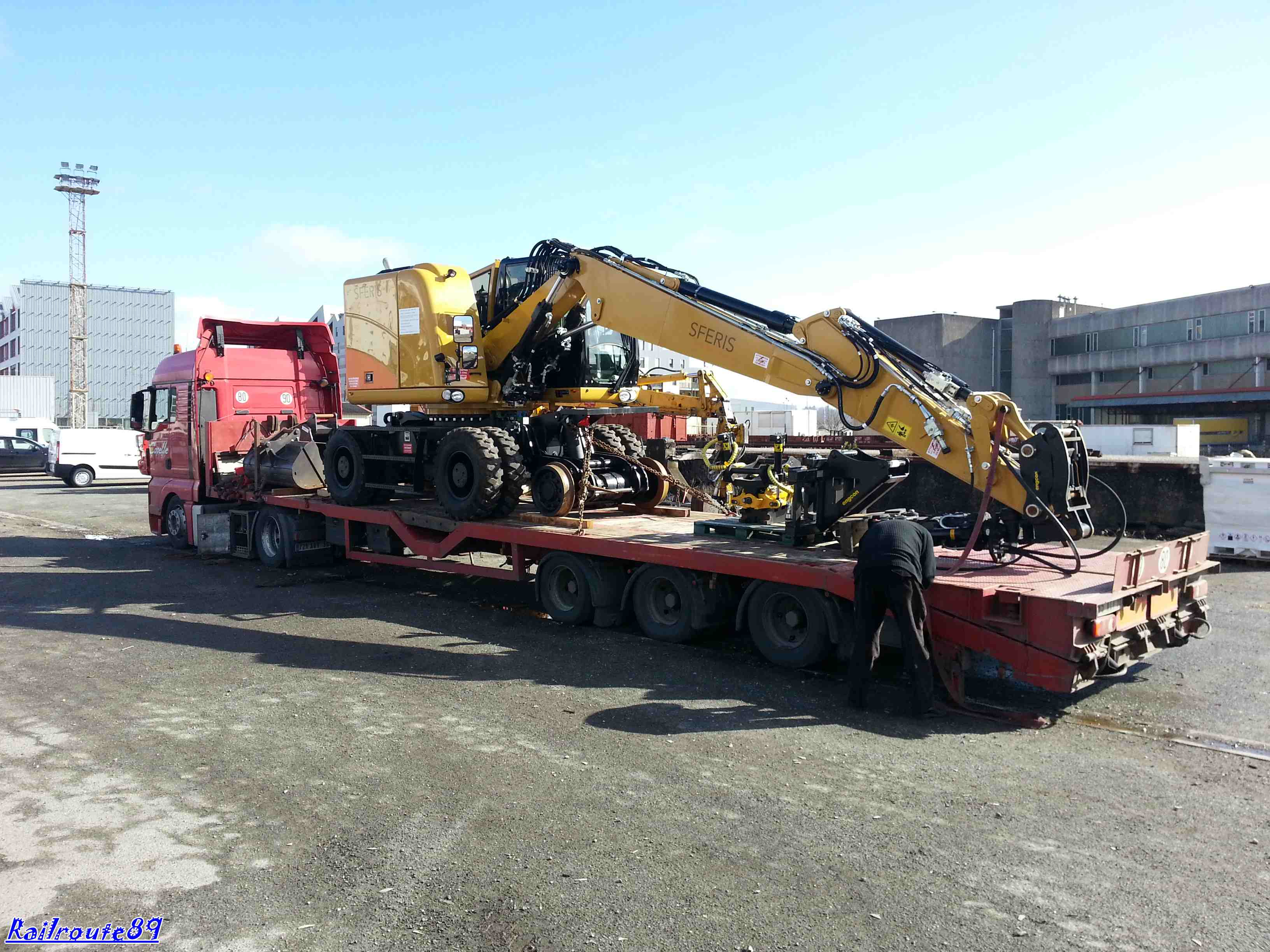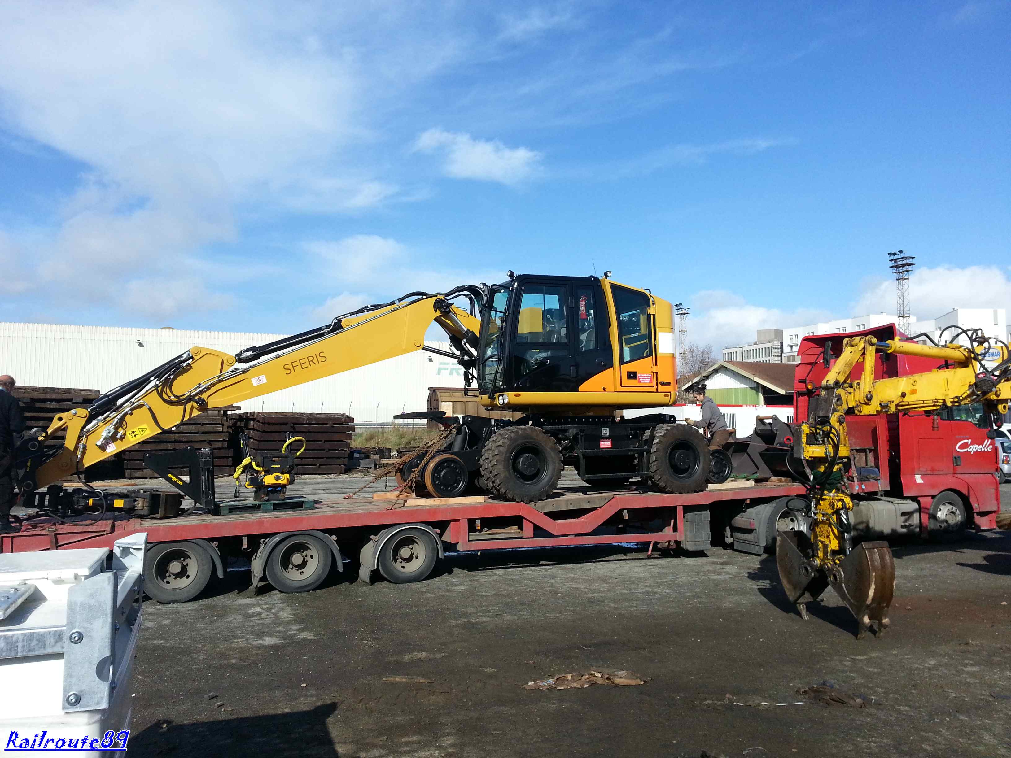 Pour mon dernier postage de la soirée(ou de la nuit vu l'heure) :pt1cable: c'est donc mon jouet que je vous présente...Déjà bien connue dans le milieu ferroviaire, il s'agit d'une 22TRR équipée comme toutes nos pelles d'un tiltrotator Engcon avec jeu de fourches(pour les 22TRR seulement), BP Kinshofer avec coquilles interchangeables de 300 et 800 (petit point négatif le volume de chargement plus faible à équivalence de taille avec une Arden Equipment), d'un groupe bourrage Hydrocal (pas encore opérationnel car obligé de tirer une troisième ligne auxiliaire plus un retour huile hydrau Hydrocal/pelle) personnellement et cela n'engage que moi comparé au groupe bourrage que j'utilisais avant je pense qu'il y avait mieux à acheter car apparemment très fragile d'emploi avec les nouvelles courroies d'entraînement (Dire du gérant qui nous a vendu le gpe).Pour finir j'ai fais quelques recherches car Sferis envisage un godet Mourgeon... :bravo2: J'aimerais bien également un palonnier à traverses et rails hydraulique... :siffle: L'arrivée de sa petite soeur est pour bientôt... :supercontent: